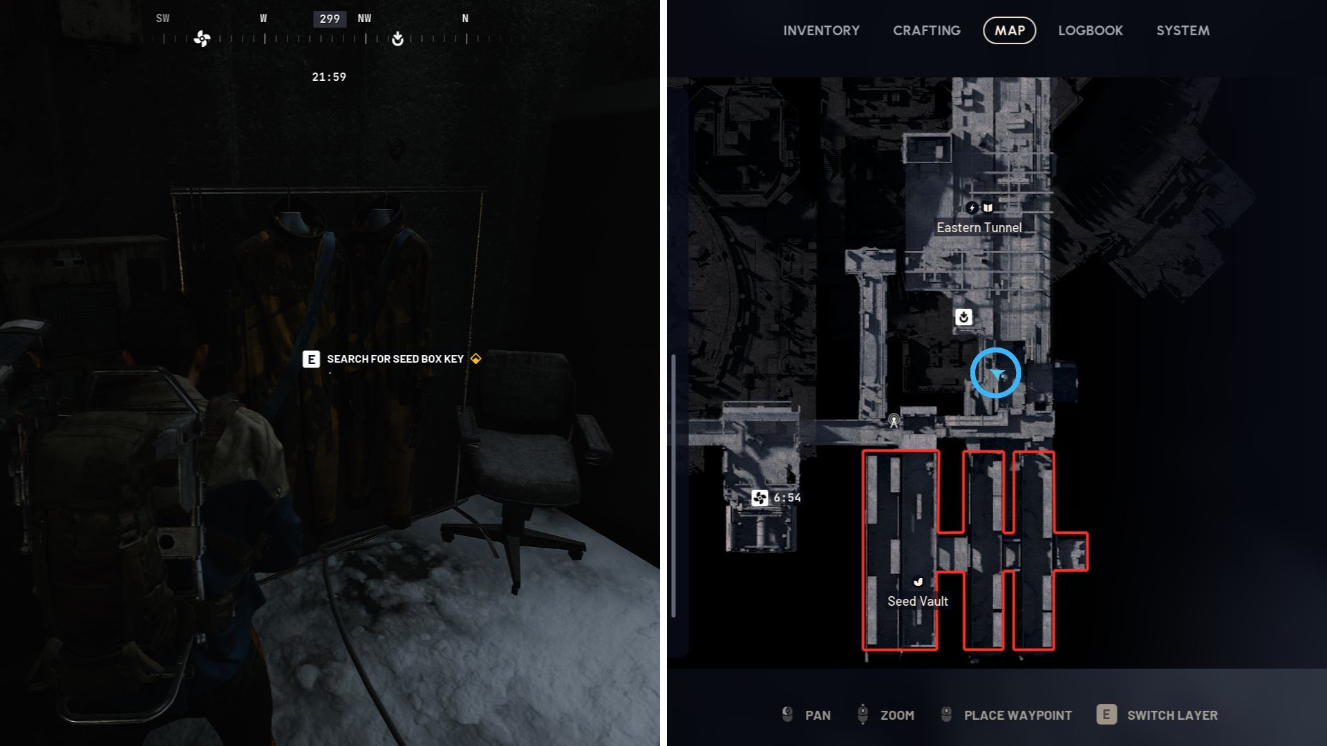 Your first goal is a computer terminal a little to the northwest of the main Seed Vault Entrance. Use it to open the Researcher’s Log.