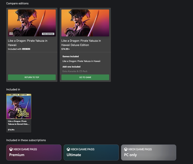 Hey everyone, just wanted to let you know that Like a Dragon: Pirate Yakuza in Hawaii is now available on Xbox Game Pass! I was stoked to see it added – it’s available with all three Game Pass subscriptions, so no matter which one you have, you can jump in and play!