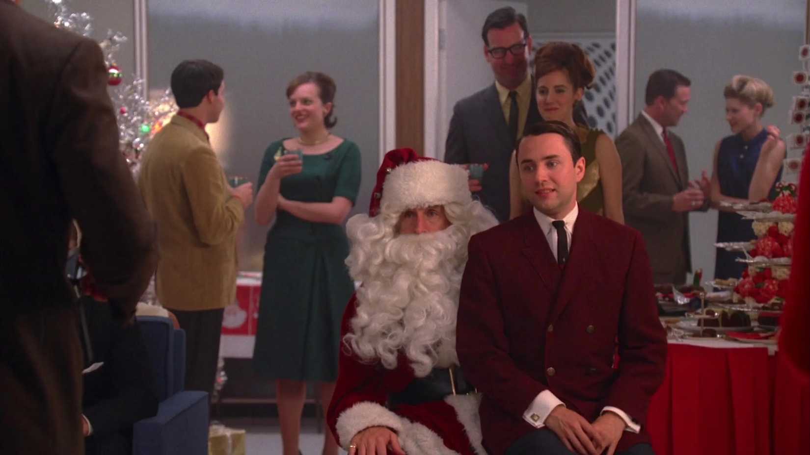 Sterling Cooper Draper Pryce was planning a simple, inexpensive Christmas party. However, when their most important client, Lee Garner Jr., unexpectedly arrived, they had to quickly switch gears and throw a much more extravagant celebration. Joan Harris made a statement, turning heads in a stunning red dress.