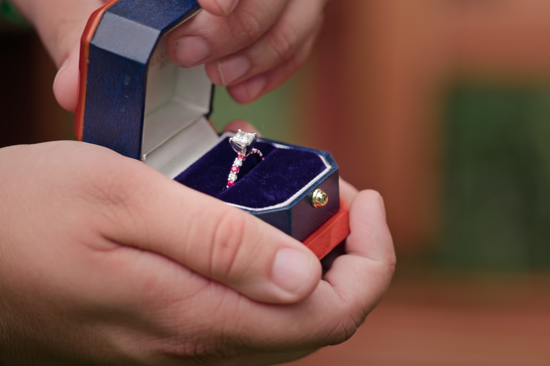 I’m really excited about the engagement ring – it’s absolutely stunning! I especially love the red stones. I knew red was her favorite color, so I really wanted to incorporate that. It’s a princess-cut ring, which is perfect because she loves princesses – she’s my princess! When I saw the rubies, it reminded me of a verse in the Bible about a virtuous woman being more valuable than rubies, and that’s how I feel about her – she’s truly priceless.