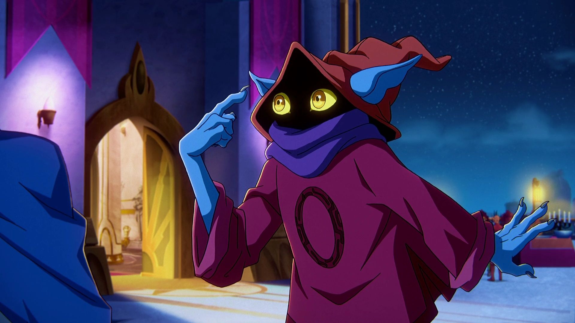 Orko is a magician who comes from a magical place called Trolla. He’s usually seen floating, and wears a large hat and scarf that cover most of his body, leaving only his big yellow eyes and pointed blue ears visible. Because Orko isn’t originally from the world of He-Man and the Masters of the Universe, his spells often go wrong in a funny way.