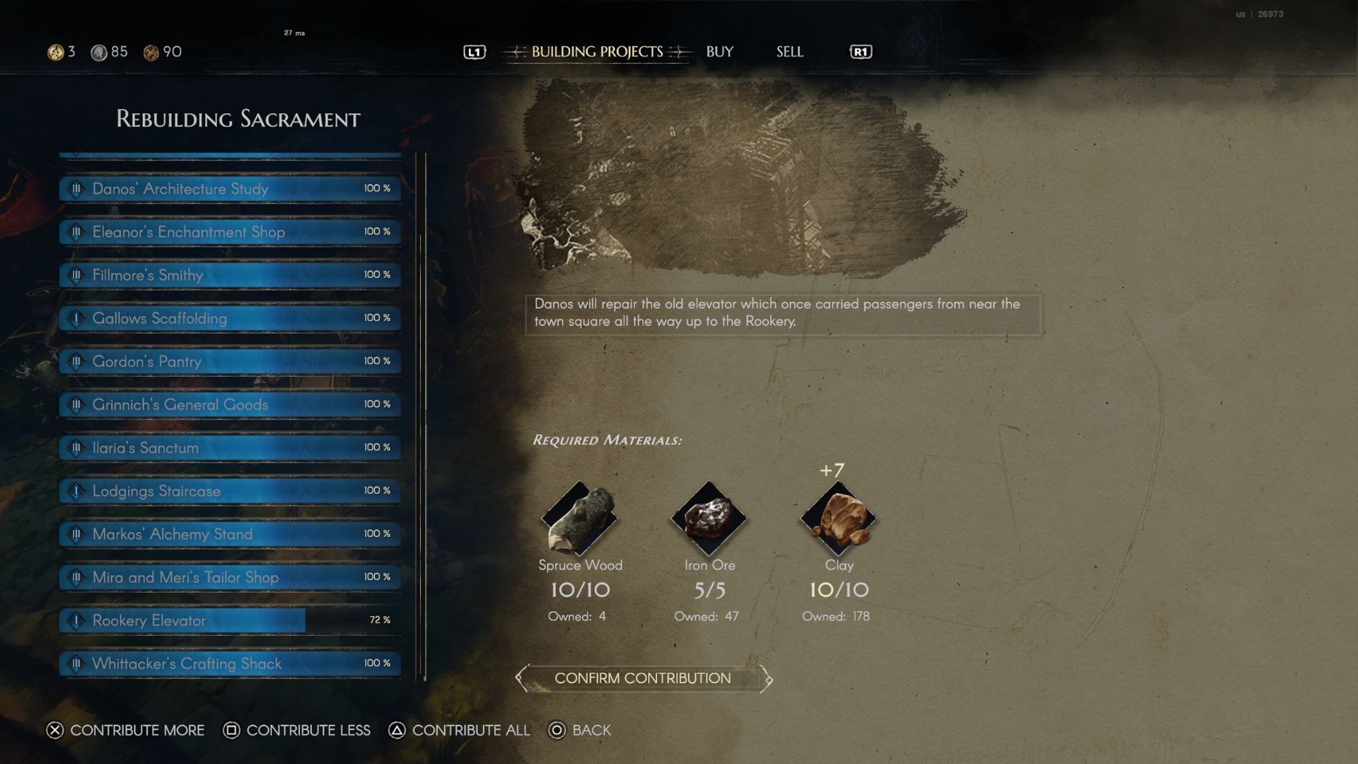 You and your friends can improve the buildings in Sacrament’s marketplace, making it a better place to live. However, completing all these upgrades will require a significant investment.