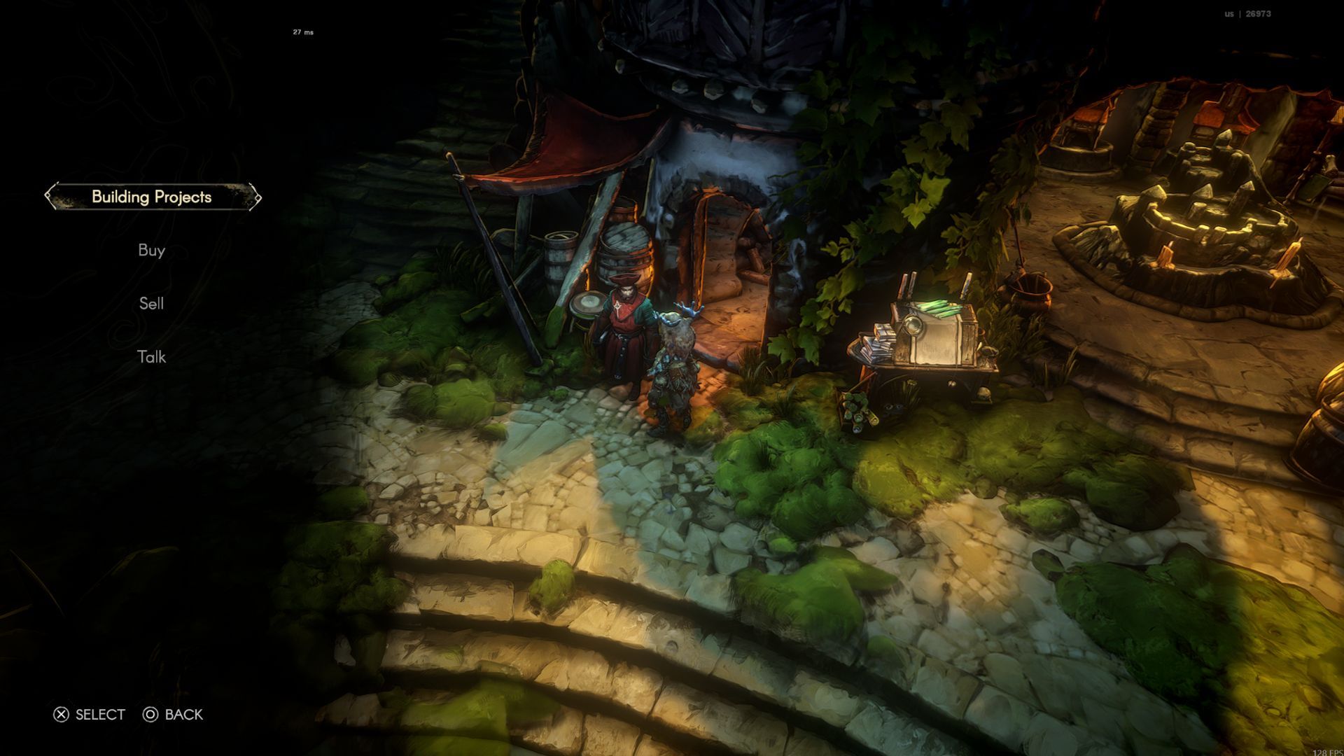 When you talk to him, he’ll mention his building projects and suggest that the Sacrament could use some work. If you talk to Danos again, a menu will pop up, and the option to discuss “building projects” will be at the very top.