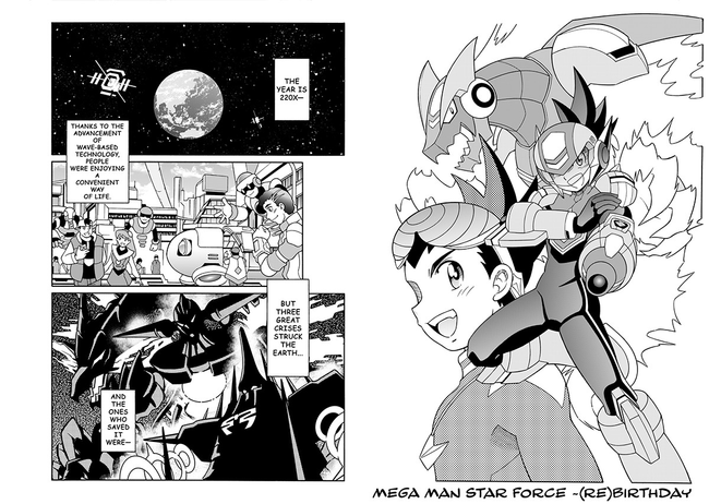 To celebrate the upcoming release of the Mega Man Star Force Legacy Collection next week, Capcom has released a special comic chapter. The chapter, titled Mega Man Star Force ~(Re)Birthday~, was created by Ryo Takamisaki, who also made a similar manga for last year’s Mega Man Battle Network Legacy Collection.