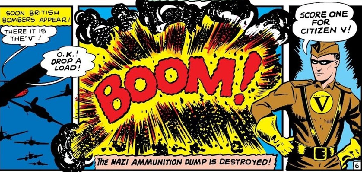 Citizen V first showed up in Daring Mystery Comics #8 back in 1941. He began as John Watkins, a British soldier who helped the French Resistance during World War II. He chose “V” for Victory as his code name, and he and his team used a hand “V” signal to communicate secretly. This group eventually became known as V-Battalion, and they continue to fight against fascism all over the world within Marvel’s main universe, Earth-616, even today.