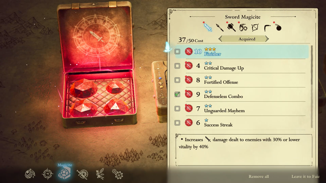 Each magicite costs a certain amount to use, and you can equip as many as your available resources allow. Experiment with different combinations to find sets that work well together, or that are best suited for particular challenges and fights.