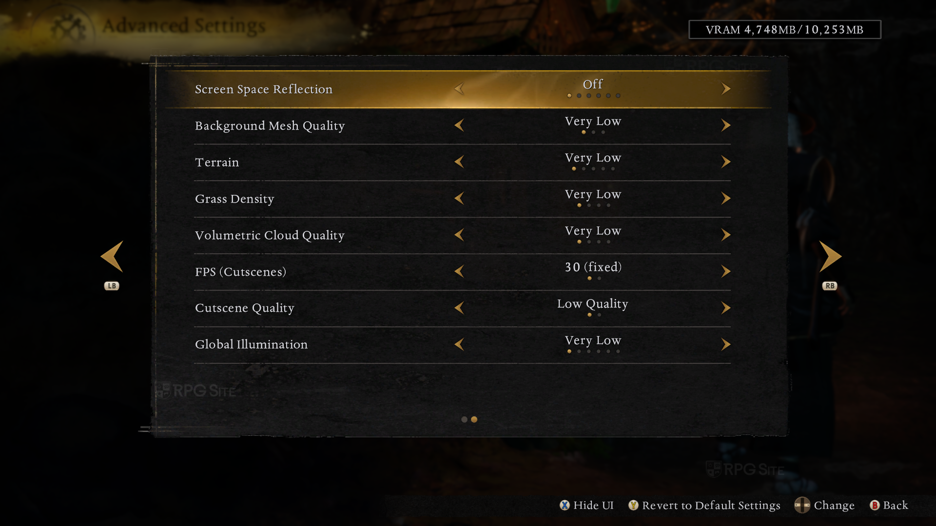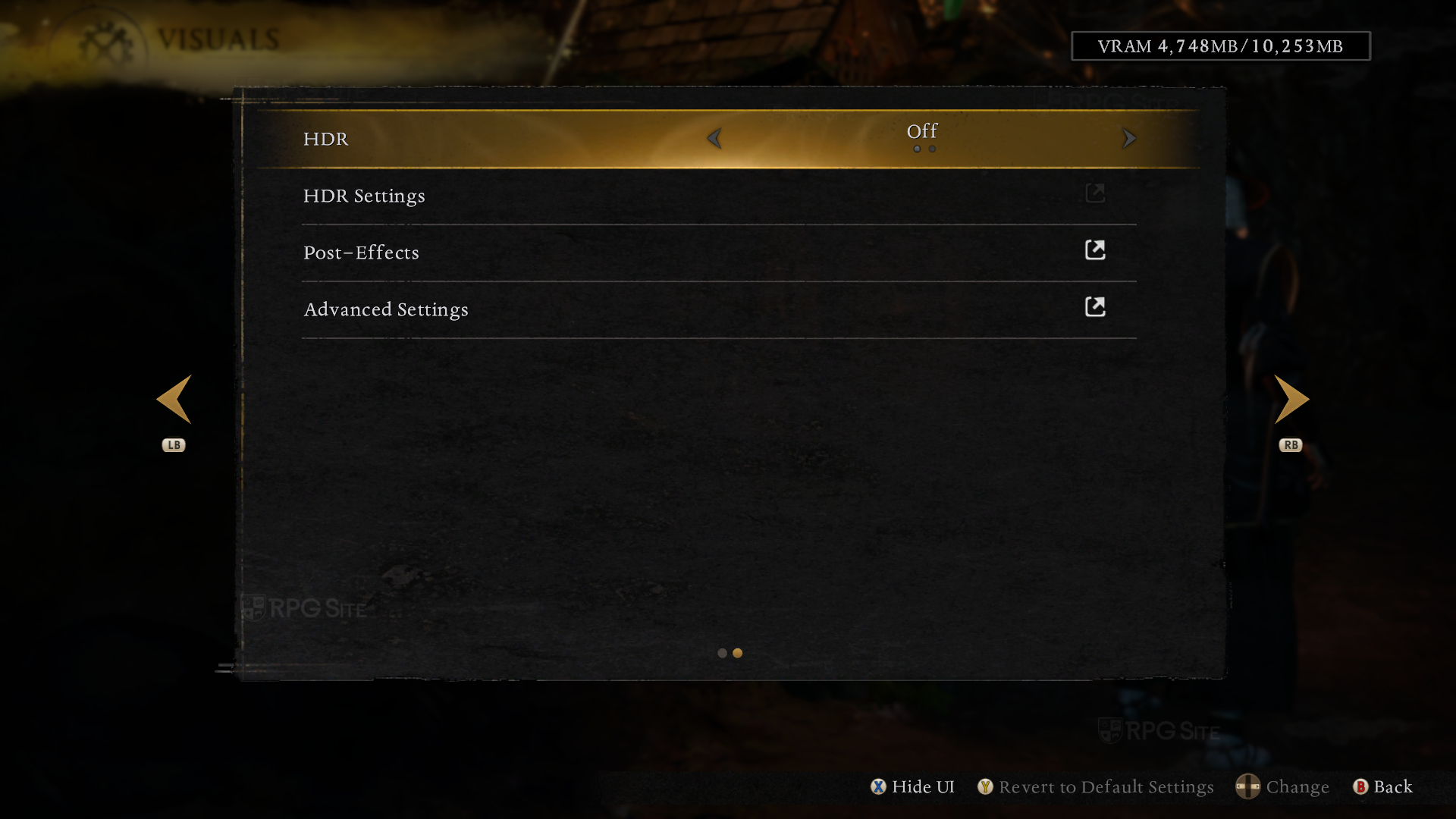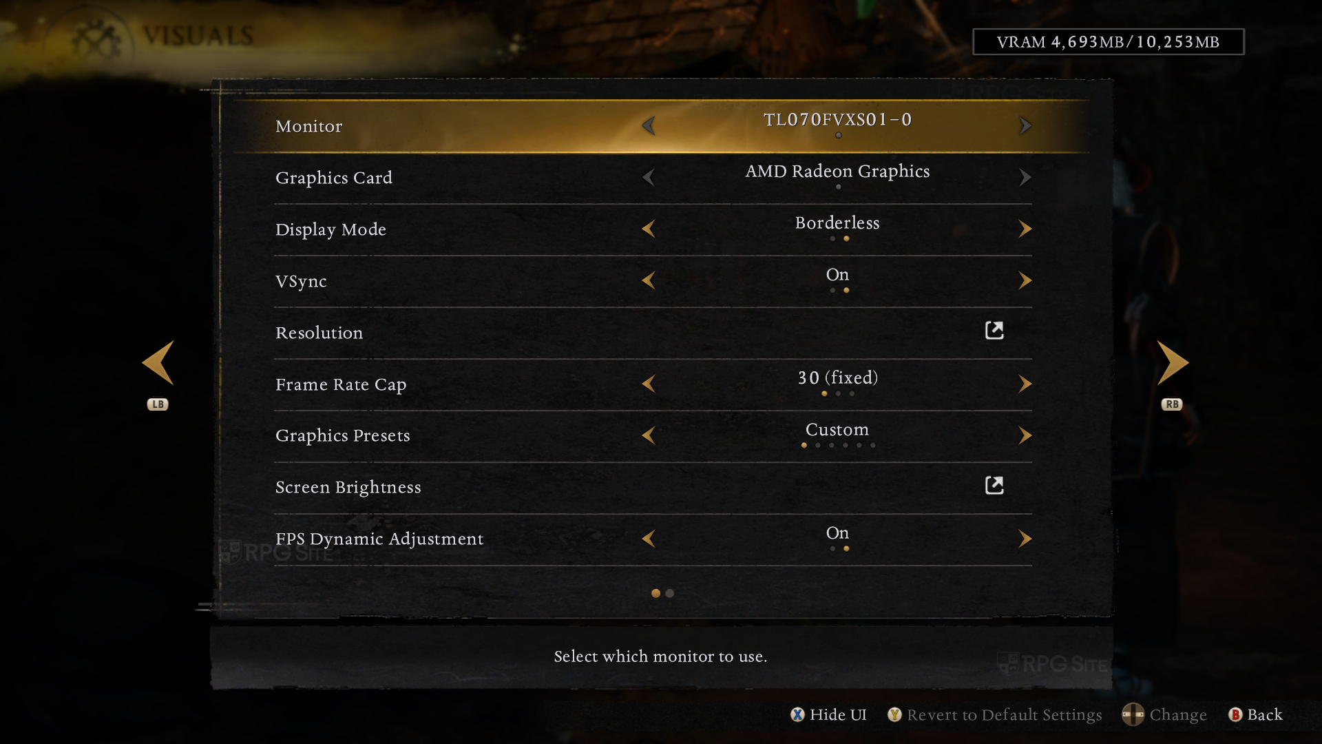 Before looking at how the game runs on handheld devices, let’s talk about the visual options on the PC version of Nioh 3. While there are plenty of settings to tweak, they’re spread across several menus instead of being neatly organized. You’ll find graphics and display options together in the ‘Visuals’ tab of the system menu. Here, you can change your monitor, choose between windowed or fullscreen modes, turn v-sync on or off, set the resolution (including upscaling options), and cap the frame rate at 30, 60, or 120 FPS. You can also select a graphics preset, adjust screen brightness, and enable dynamic FPS adjustment which automatically lowers the frame rate cap to keep the game running smoothly. HDR support, post-effects, and advanced visual settings are also available. The game constantly displays how much video memory (VRAM) is being used. Plus, you can hide the on-screen interface to see the effects of your changes in real time.