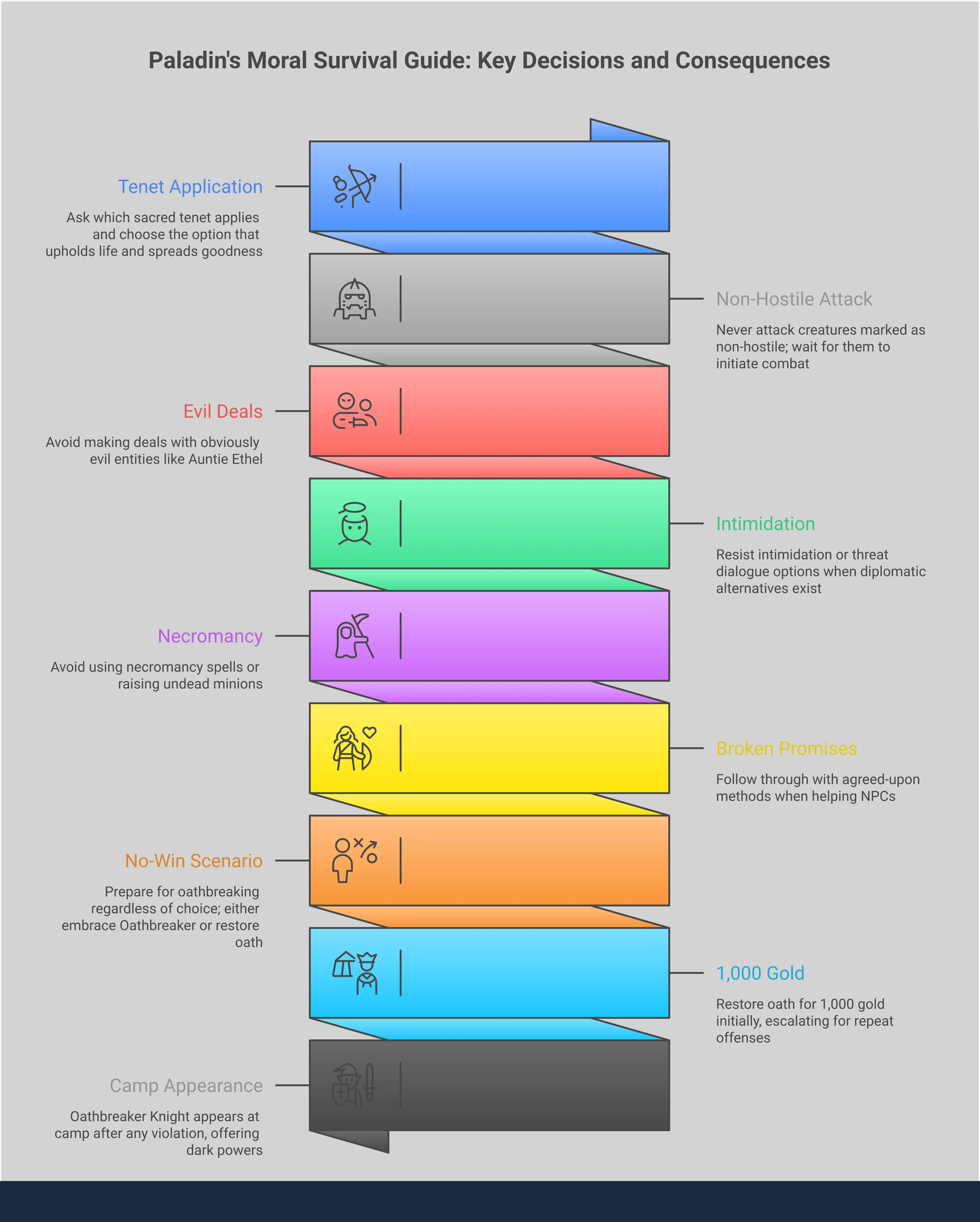 - Falling from grace is a choice, not just a punishment: If you break your oath, you can either pay gold to the Oathbreaker Knight to restore it or embrace a new identity. This allows you to pivot to the powerful Oathbreaker subclass, which offers a completely different set of dark abilities.