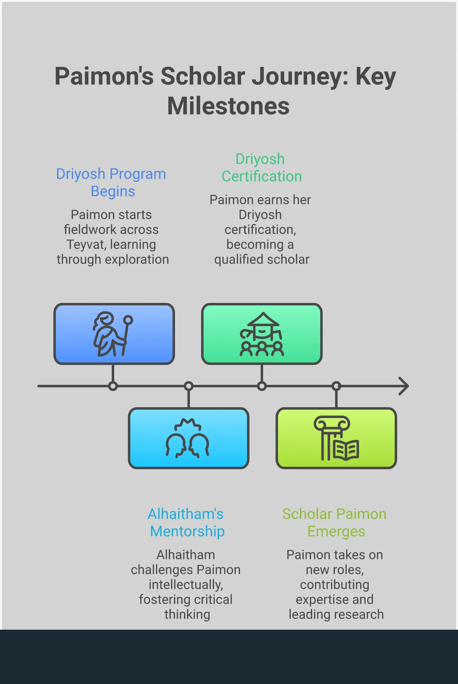 Becoming a certified scholar will significantly change Paimon’s relationships. Her connection with the Traveler will become more equal, she’ll gain the respect of scholars in Sumeru, and she’ll be able to make new friends and professional connections. This isn’t just about academic achievement; it’s about Paimon finding her own identity and changing how others see her.