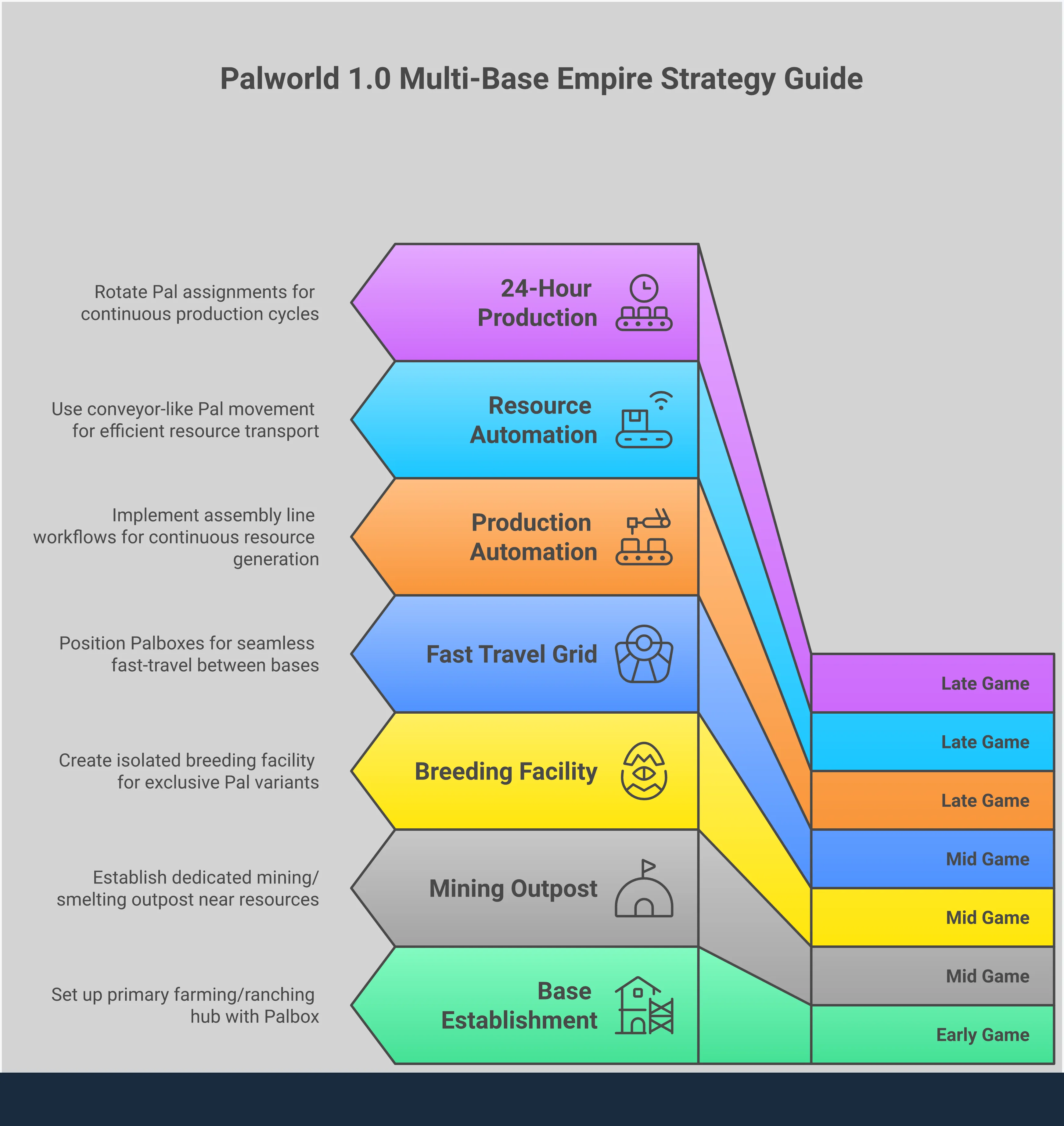 After you’ve successfully built and managed a main base, the next step is to create a larger empire with multiple bases. This isn’t just about owning more land—it’s about building a connected system of specialized outposts that support everything you do, from breeding Pals to creating resources for your adventures. The new 1.0 update, with its added regions and features, makes planning this expansion even more appealing.