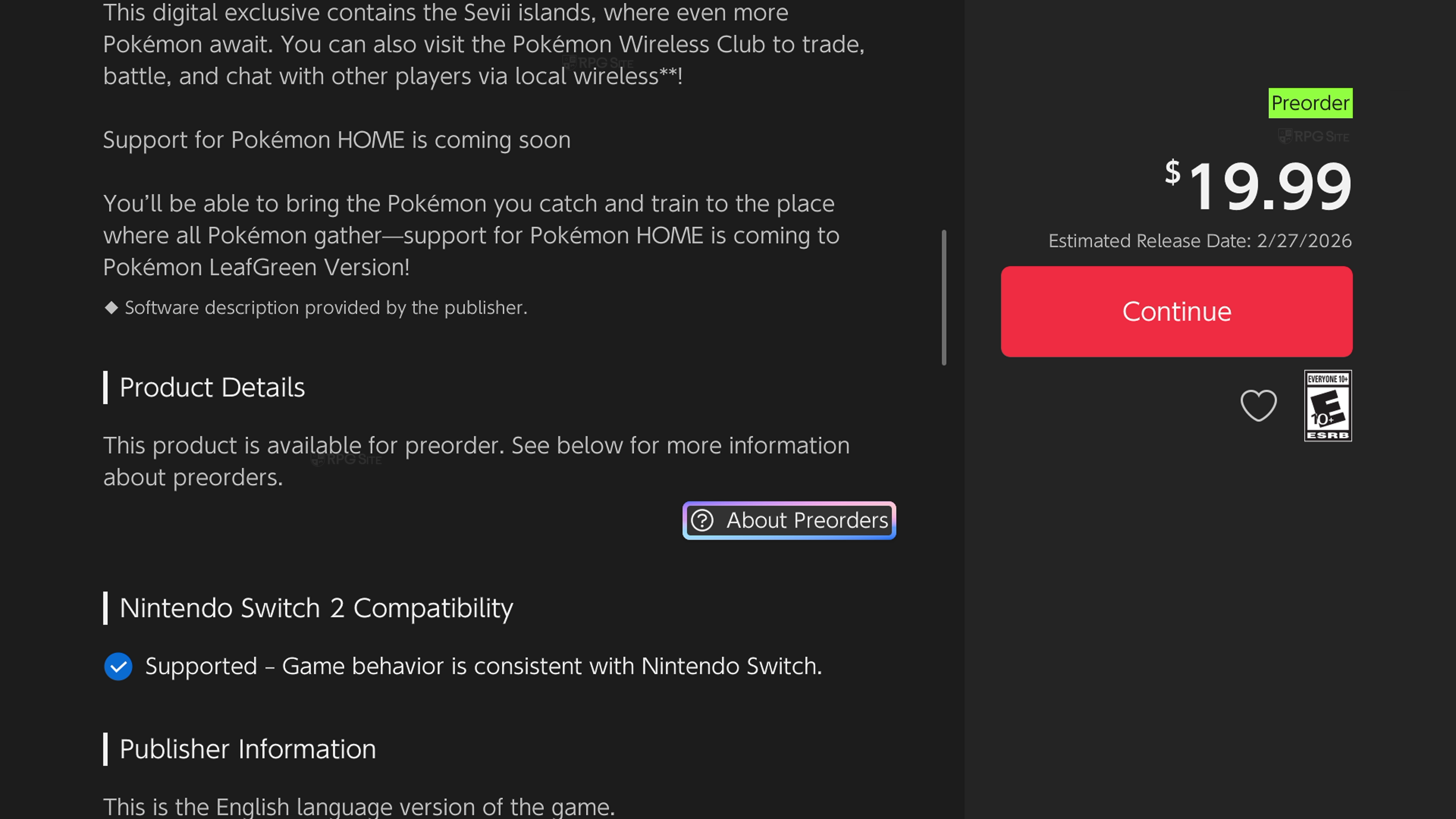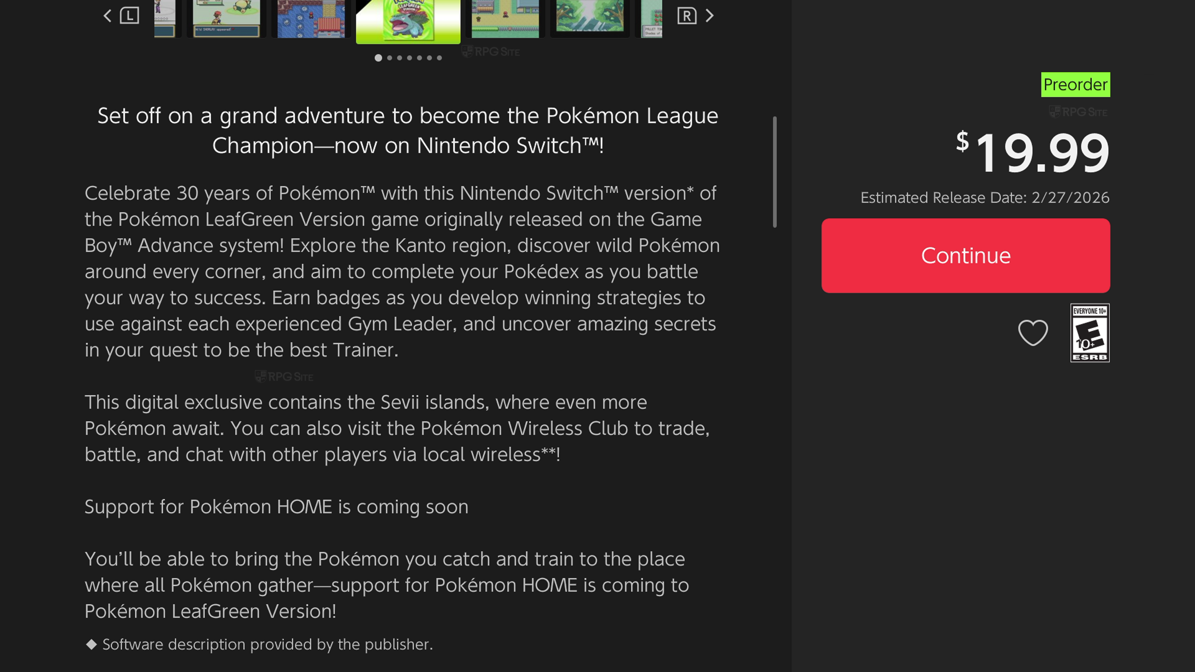 Pokemon FireRed and LeafGreen versions are now listed on the Nintendo eShop and are scheduled to be released on the Switch on February 27th.