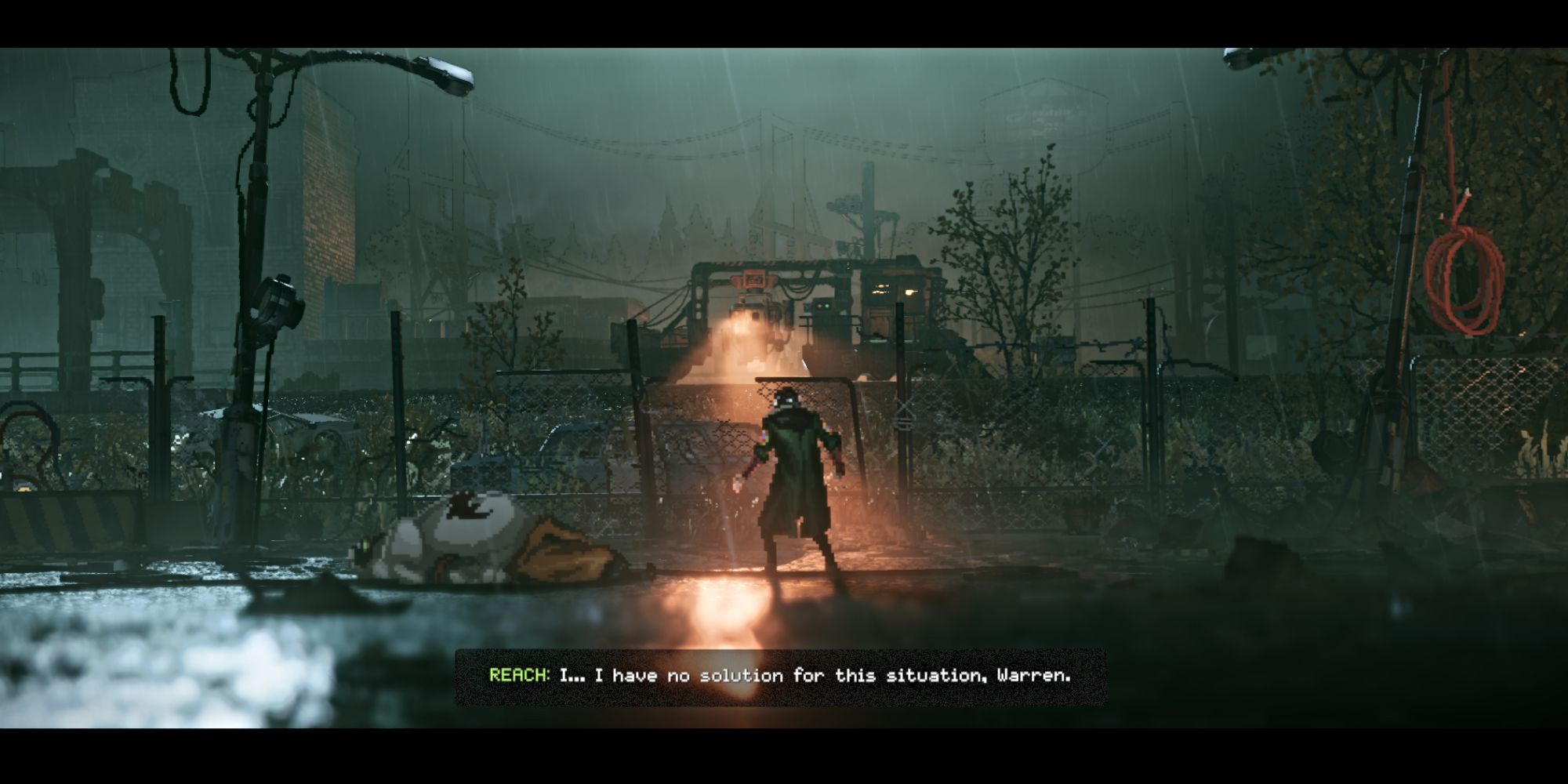 Right from the beginning of the demo, the character shows subtle human traits – like occasionally sneezing when idle, tripping over things while running, and reacting to danger. These small details suggest that Warren’s natural instincts haven’t been completely suppressed, even though the R.E.A.C.H. system largely controls his words and actions. I thought these little touches were really interesting, especially since you don’t often see this level of detail in 2D games.