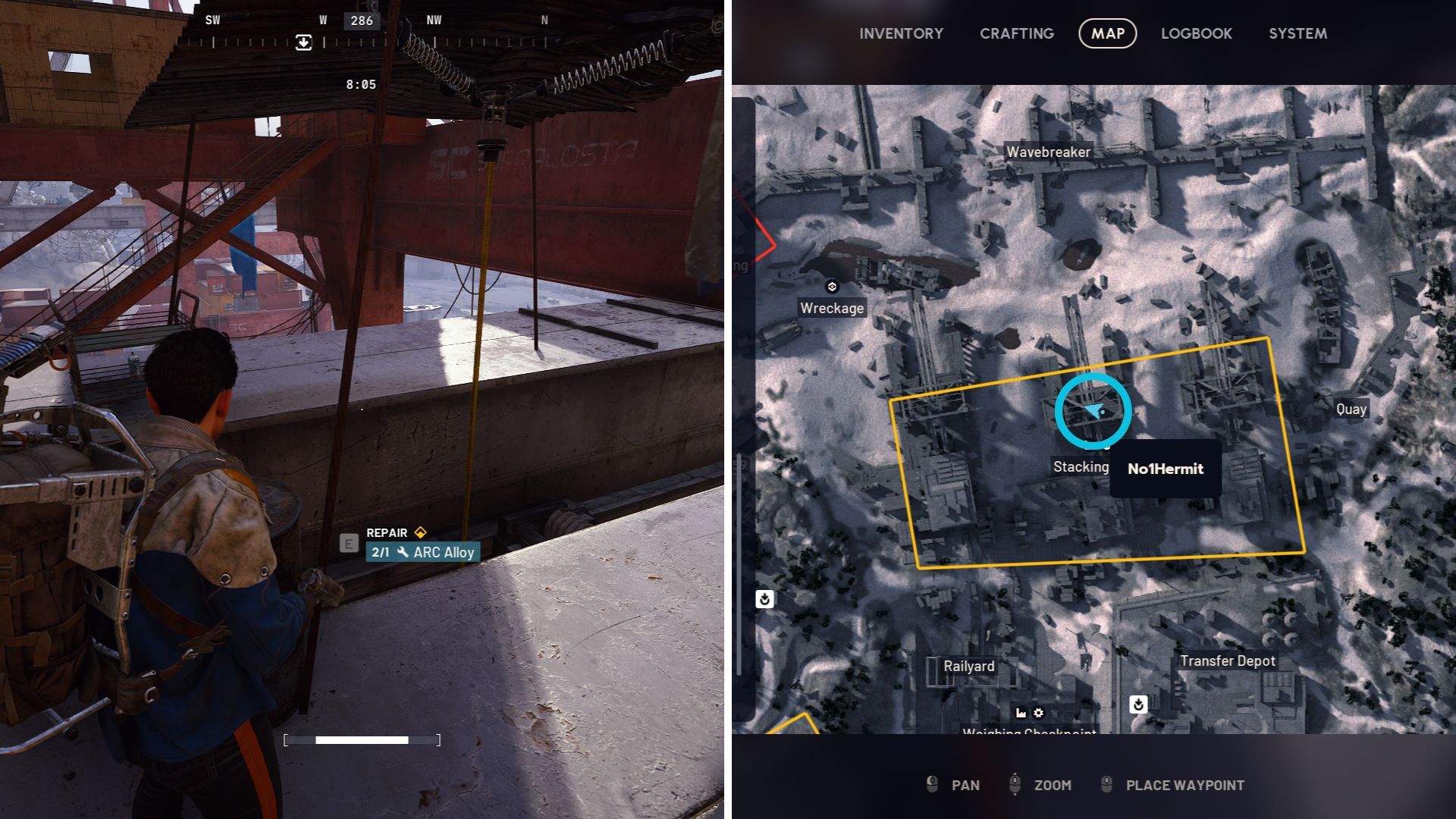 You’ll also need 1 ARC Alloy to fix things. You can either bring it with you, or find it by scavenging parts from a destroyed ARC unit.