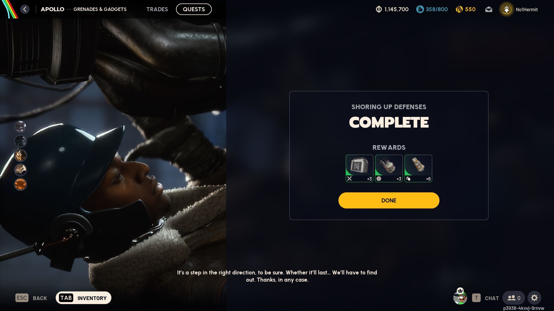 Upon quest completion, Apollo will award you with the following items: