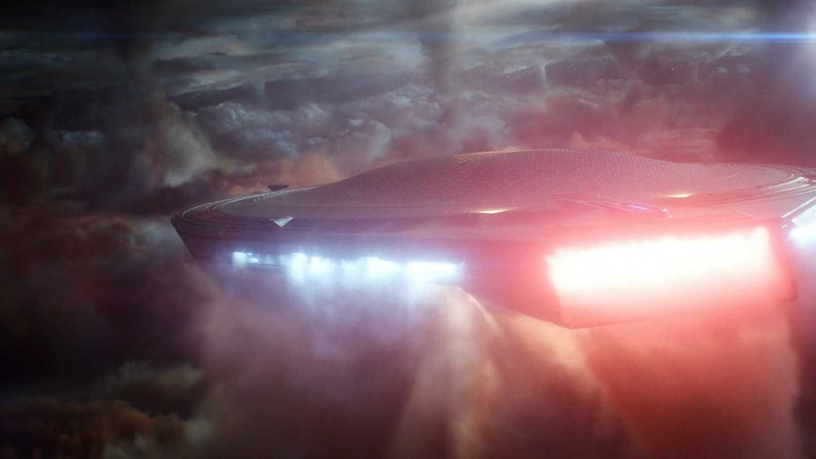 The USS Athena’s disc-shaped section flew above the colorful gas of the nebula, echoing the iconic scene of the Starship Enterprise passing through Saturn’s rings. This moment set the stage for a confrontation with Nero’s enormous Romulan mining ship, the Narada, from the 24th century. It was a clear reference to the first Star Trek film starring Chris Pine, and was featured in Star Trek: Starfleet Academy.
