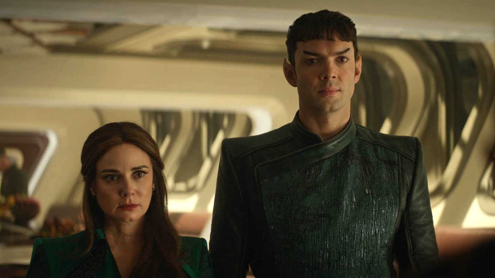 Spock struggles with feeling inadequate for T’Pring because of his human heritage, and this is highlighted when they symbolically try to understand each other’s perspectives. The episode also marks the beginning of a long-running romantic storyline between Spock and Nurse Chapel throughout Star Trek: Strange New Worlds.