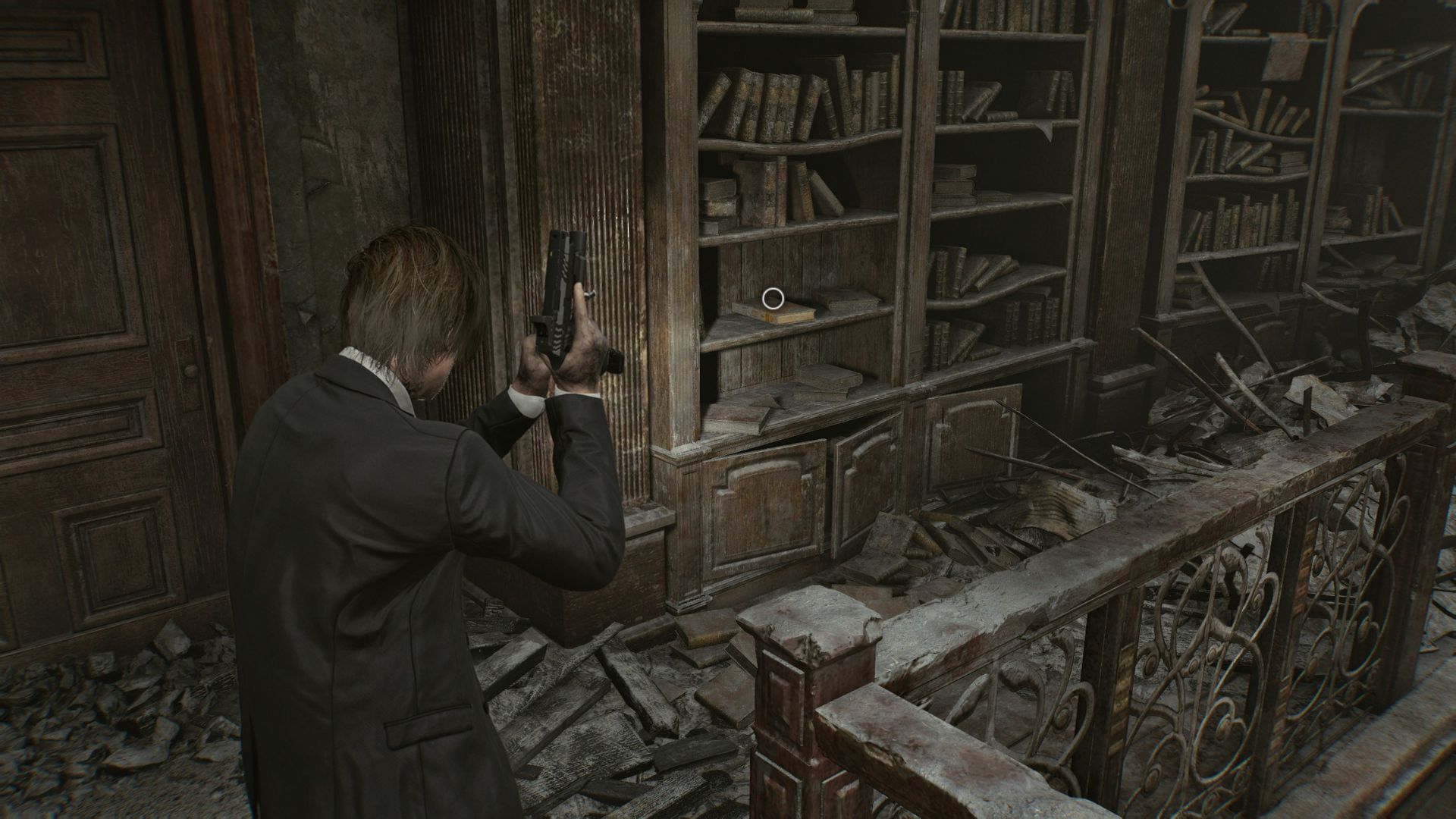 Go down the hall and turn left after you pass the room with the statue to reach the library. Once inside, go up the stairs and turn left when you see the tipped-over bookcase. Don’t forget to check out the raccoon statue if you haven’t already!