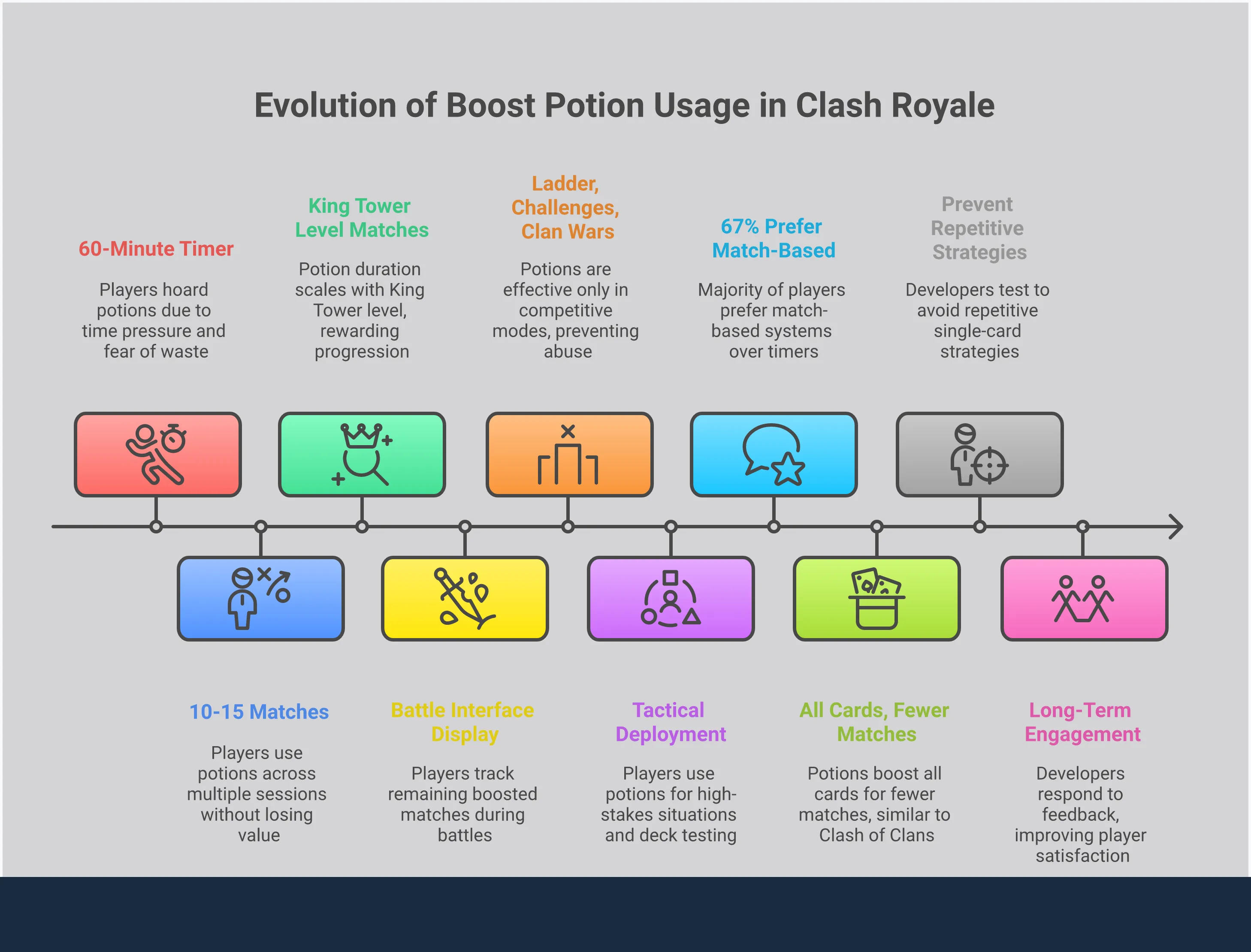 Clash Royale isn’t alone in trying to figure out how to make temporary power-ups feel worthwhile and balanced. The question of whether to limit boosts by time or by how many times they can be used is a common challenge in game development – you see it in large online games and other competitive mobile titles. Examining how other games handle this can help us understand what strategies are effective, and why the idea of linking Boost Potions to individual matches is so popular.
