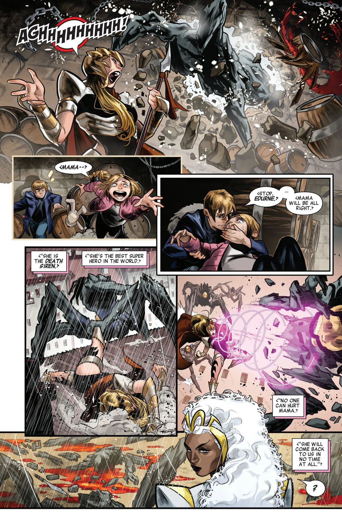 The first issue of Storm: Earth’s Mightiest Mutant attempts to set up the story, but the initial events feel disjointed. The plot itself jumps around quickly, touching on various elements like Storm battling a new global threat, a short alliance with the Avengers, and the sudden death of a character named Death Siren. Unfortunately, Death Siren’s death doesn’t really contribute to the story, and mainly exists to create emotional conflict for Storm.