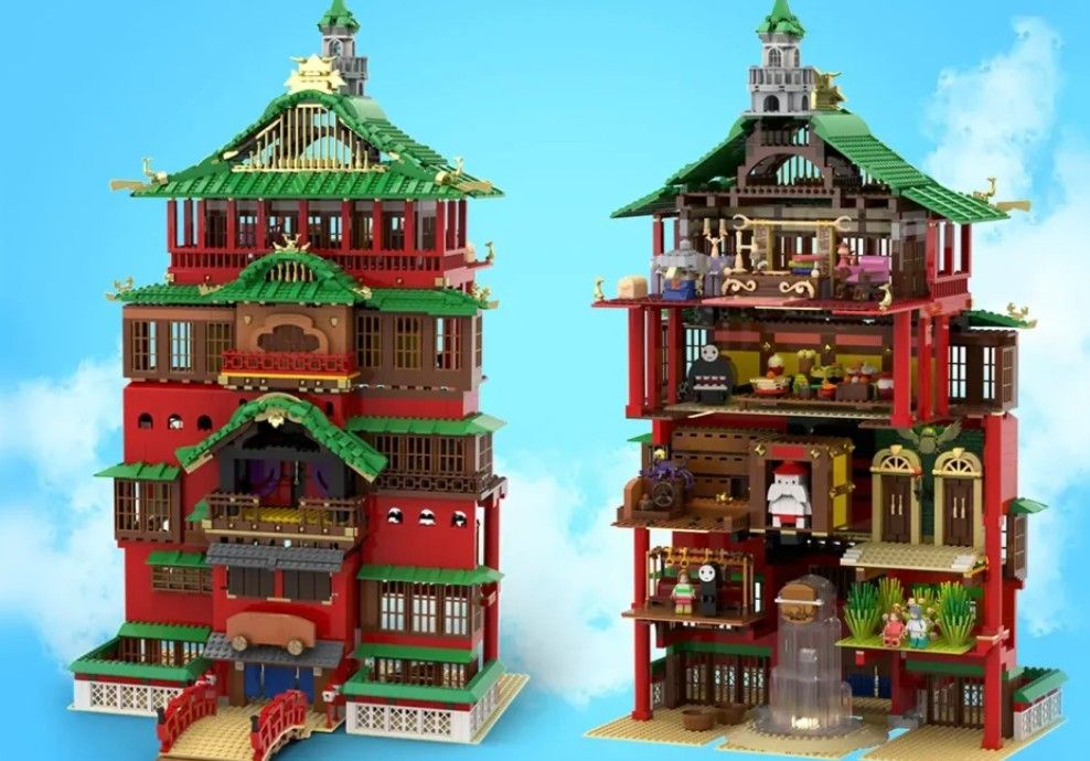 LEGO builder TrumanBricks, known for their successful “Starry Night” set with over 2,300 pieces, has submitted a design for Spirited Away. The model recreates the film’s central location – a large bathhouse owned by the powerful witch Yubaba – with detailed interiors accessible through compartments on the back.