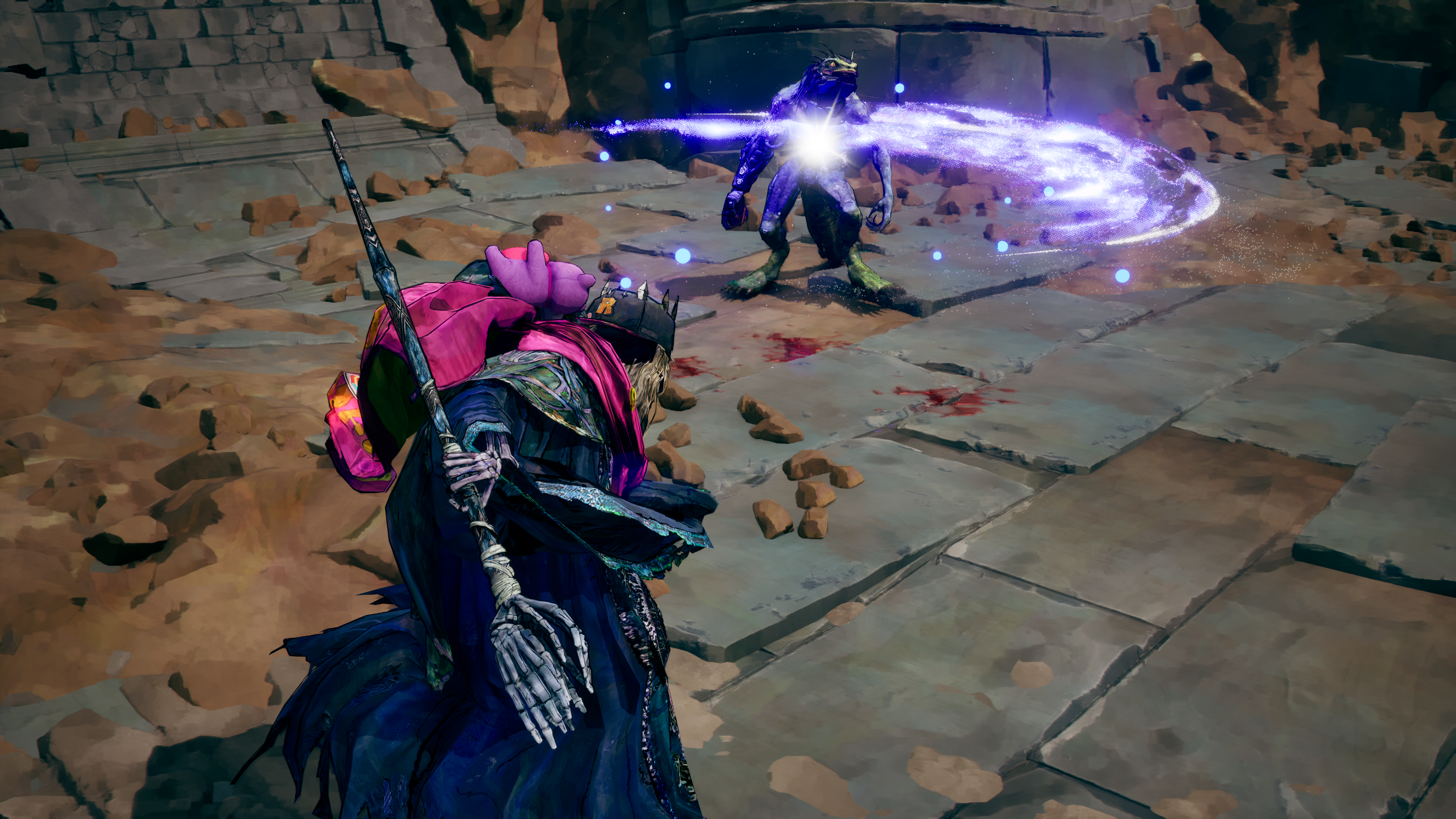 – Can control gravity to round up enemies and shove rocks into them once they’ve been gathered up