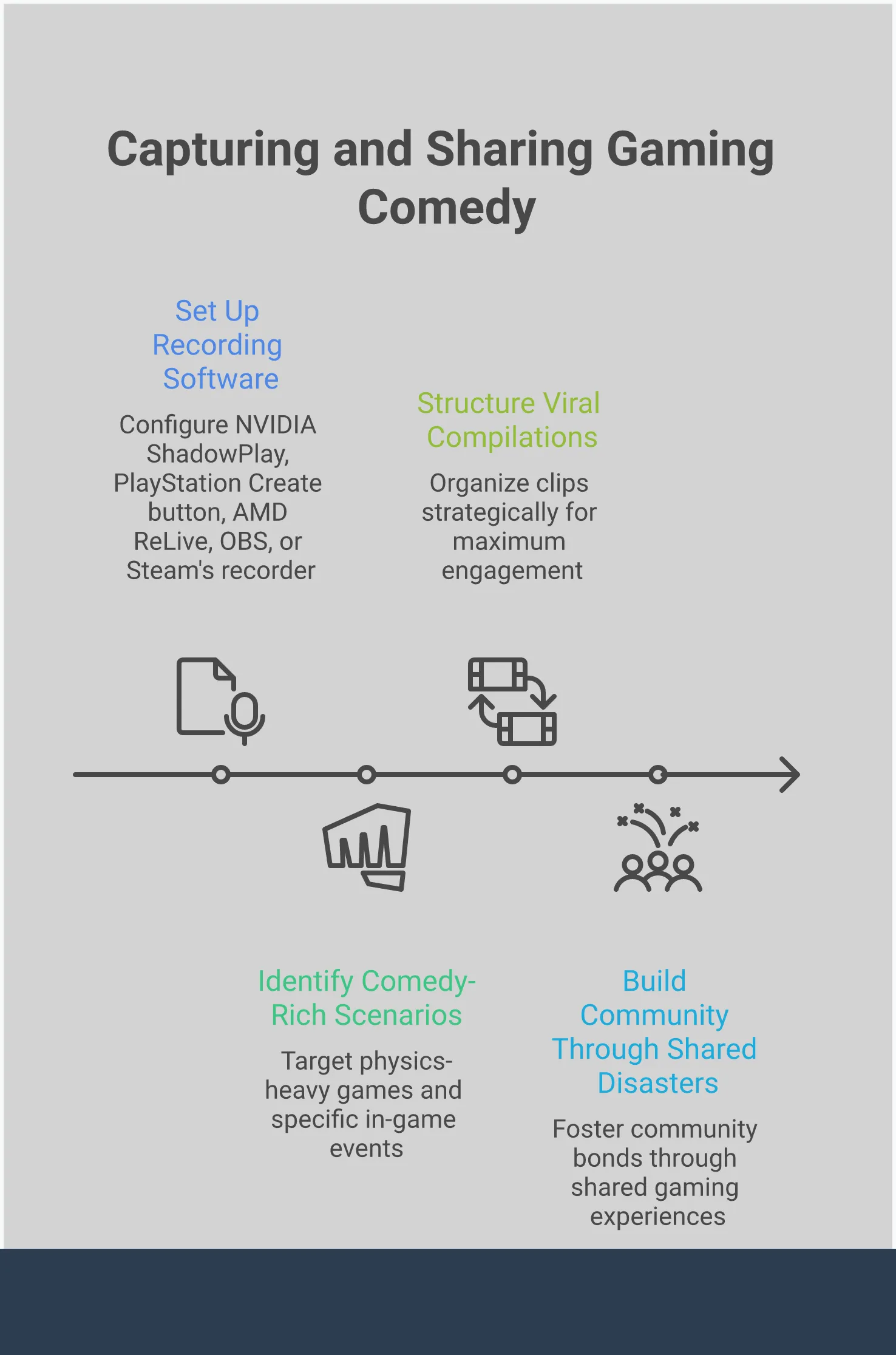 Want to save those hilarious gaming moments? Luckily, most consoles and PCs have recording tools built right in! Features like NVIDIA ShadowPlay or the PlayStation’s “Create” button let you easily save the last few minutes of gameplay with a quick press of a button. Practice using the feature so you’re ready to capture anything funny that happens. You don’t need to worry about getting the timing perfect – you can always trim the clip later to highlight the best parts.