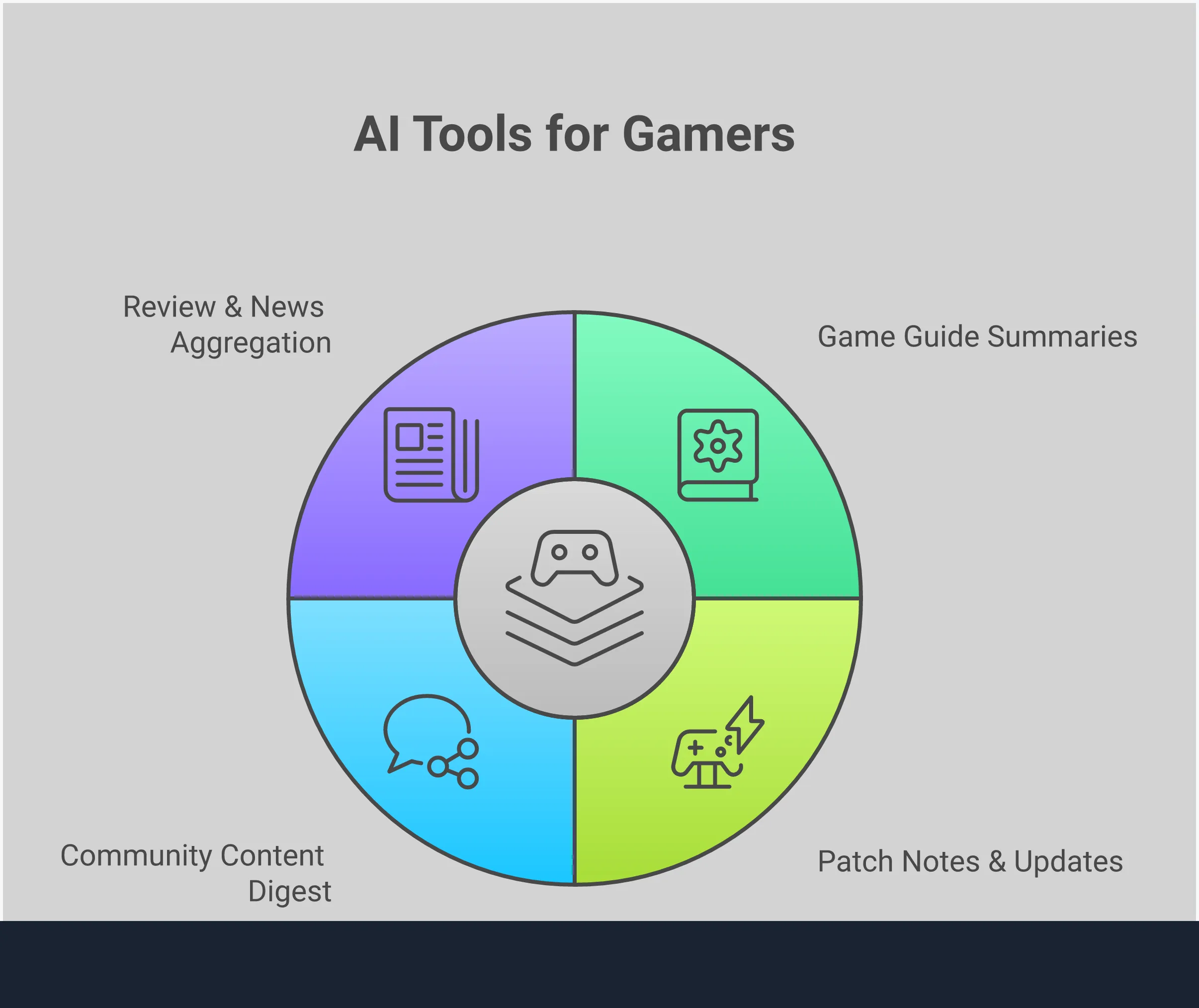 Gamers who create content – like streamers, YouTubers, and guide writers – need to manage a lot of information. They’re always looking up how games work, following what the community is talking about, and taking notes for new videos or guides. AI summarization tools can help them sort through all this information. For example, they can quickly understand what players are saying on Reddit to find popular video ideas, or combine information from different sources to make sure their guides are correct. By automating these time-consuming tasks, AI helps creators focus on making great content for their audience.