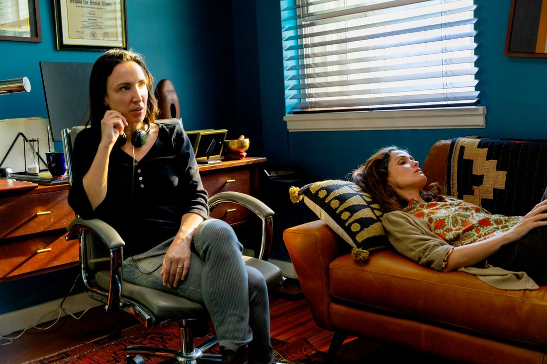 The Bronsteins recognize a common thread running through their films, despite their different styles: they all explore ideas about parenthood, self-confidence, and what we look for in relationships. Marty Supreme focuses on a confident young man attempting to avoid responsibility for his affair with a married childhood friend, Rachel (Odessa A’zion), who is also pregnant with his child. Mary Bronstein was particularly struck by Rachel’s situation, expressing her dislike of the phrase “we are pregnant,” pointing out that only Rachel is carrying the baby. Meanwhile, If I Had Legs I’d Kick You centers on a woman feeling overwhelmed and unsupported, especially by her exasperated ship-captain husband, Christian Slater, who mostly communicates through frustrated phone calls while at sea.
