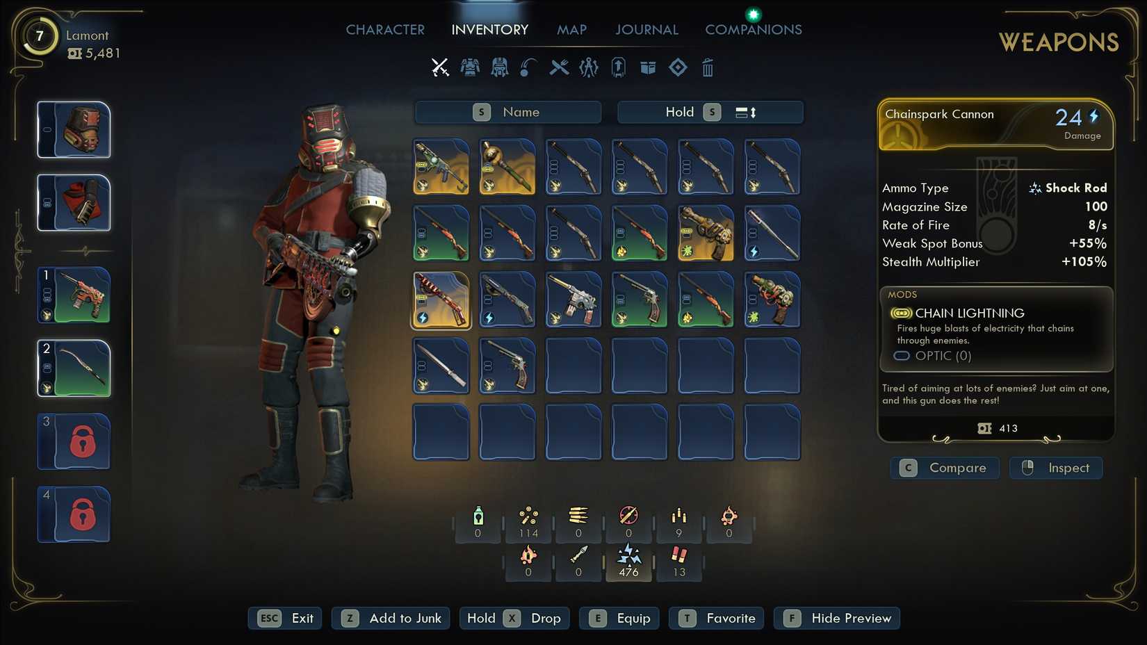 The Officer Regalia isn’t particularly noteworthy, but the Chainspark Cannon is a powerful weapon. Its Chain Lightning upgrade is especially effective against groups of enemies, particularly those vulnerable to electric damage.
