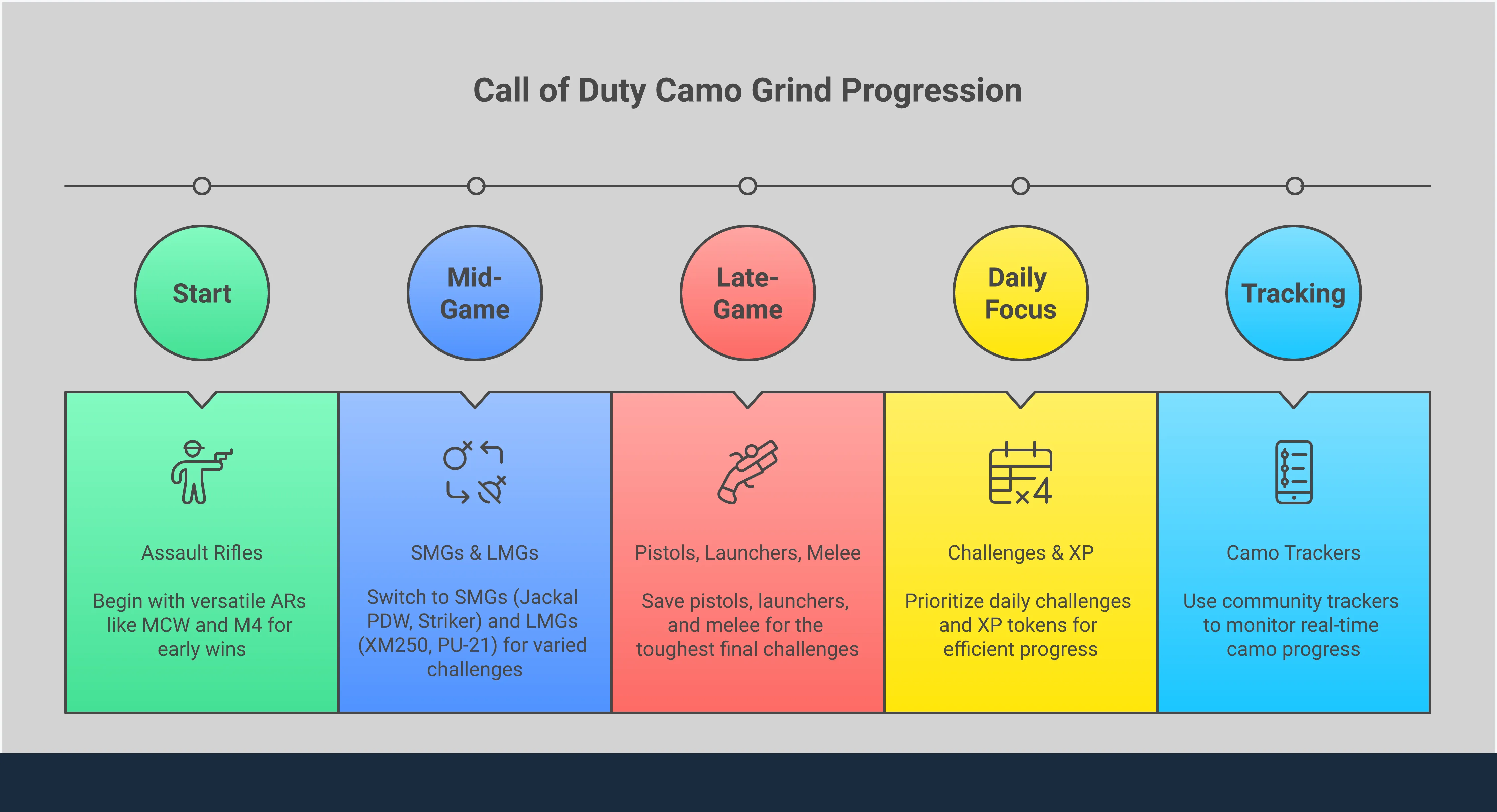 Getting those special camouflage patterns (Mastery Camos) isn’t just about being good at the game – it’s about playing efficiently. It’s not enough to simply play the game; you need to focus on the grind itself. This means making the most of every match by optimizing your time, earning XP as quickly as possible, and using strategies that help you complete challenges fast. Working smarter, not just harder, is the key to unlocking those camos without getting frustrated.