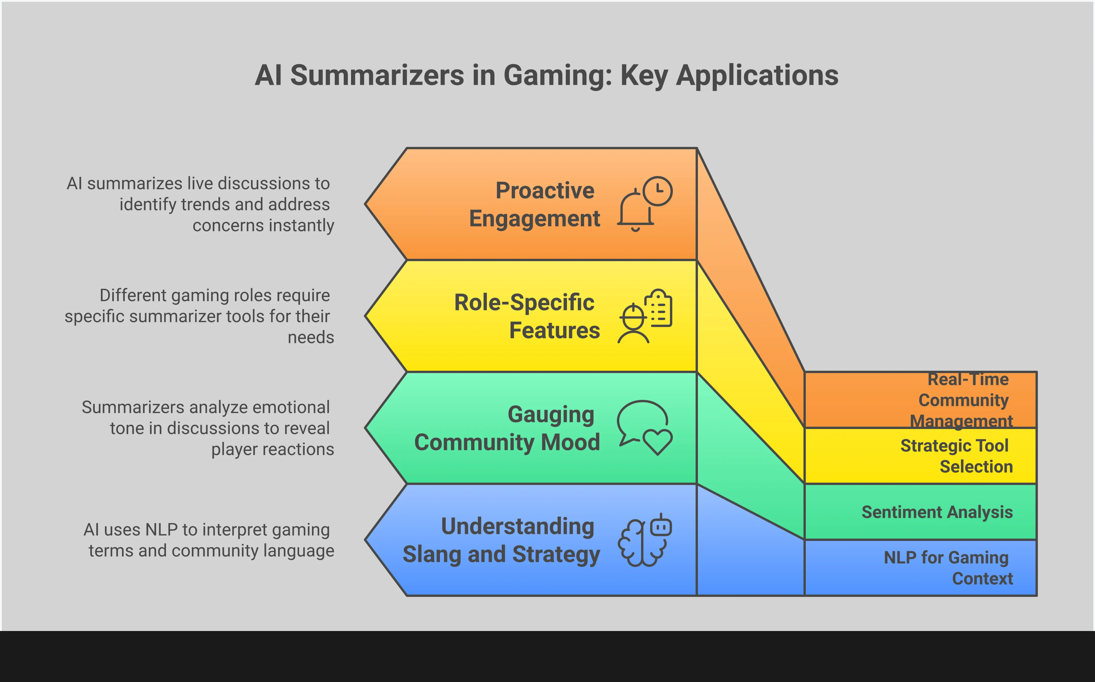 What makes AI summarizers so good at understanding text? It’s thanks to a technology called Natural Language Processing, or NLP. You can think of NLP as the AI’s ability to understand human language – including all the unique ways we use it, like slang and jokes. This is especially helpful for gamers, because our conversations are often filled with specific terms like ‘meta,’ ‘nerfs,’ and ‘buffs,’ as well as references to complex game details.