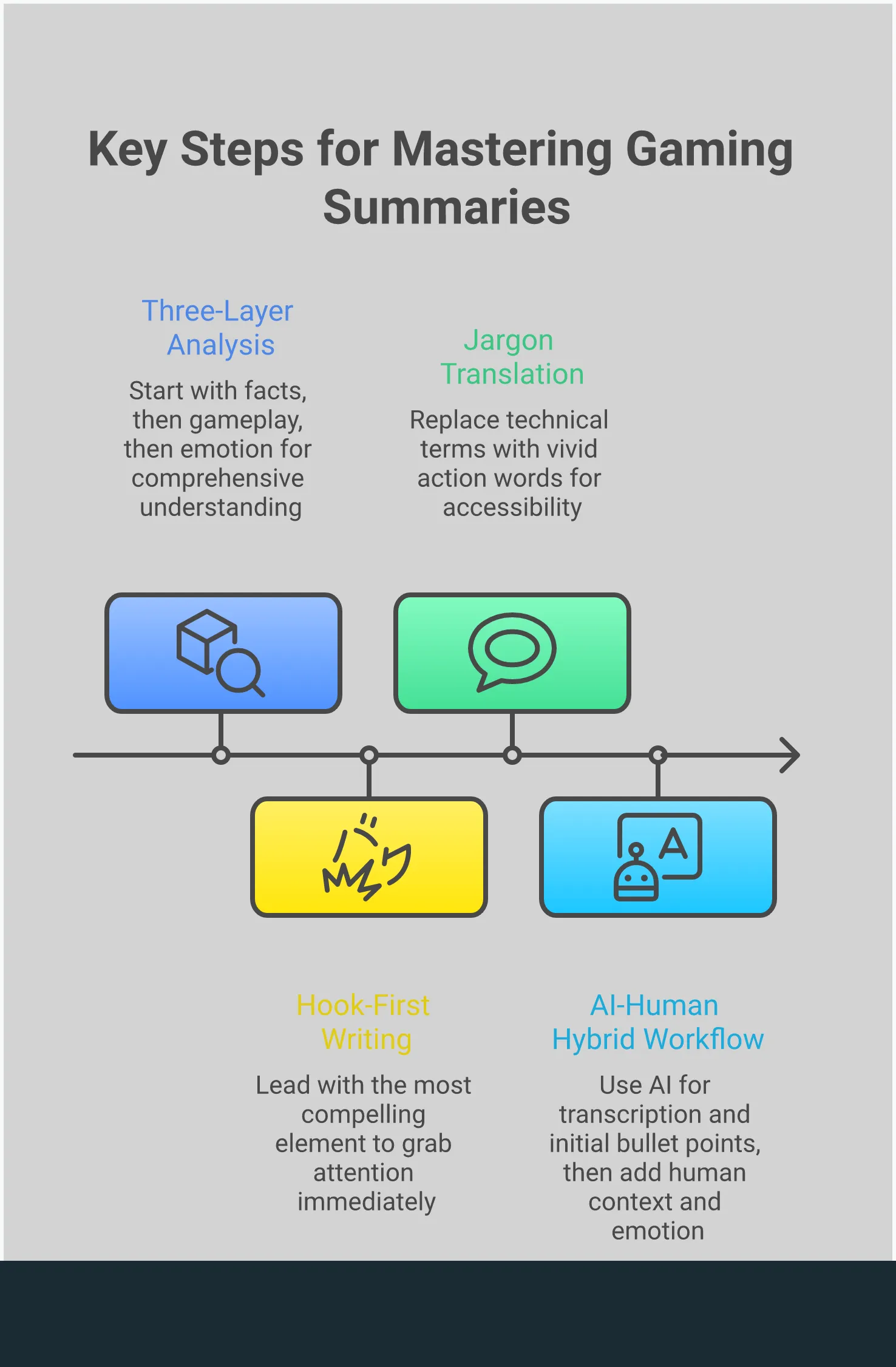 - Find the Core Message First: Before writing, identify the central point of the game, review, or discussion. This focus ensures your summary is sharp and relevant, cutting straight to what matters most.