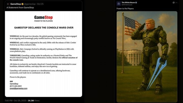 The U.S. Department of Homeland Security shared an image from the video game Halo on social media to recruit people for Immigration and Customs Enforcement (ICE). This followed a similar post from the White House account, which responded to GameStop’s announcement about the end of the console wars with a picture of the President as Master Chief. The posts were inspired by the news that Halo: Combat Evolved will be released on PlayStation in 2026. Many fans quickly noted the irony of the government using imagery from a Microsoft game series.