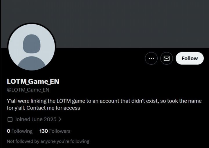 The intended official account name, LOTM_Game_EN, was already claimed by another user. It appears SPARK NEXA, or the company publishing their game, tried to create the account too early, allowing someone else to register the username before they could.