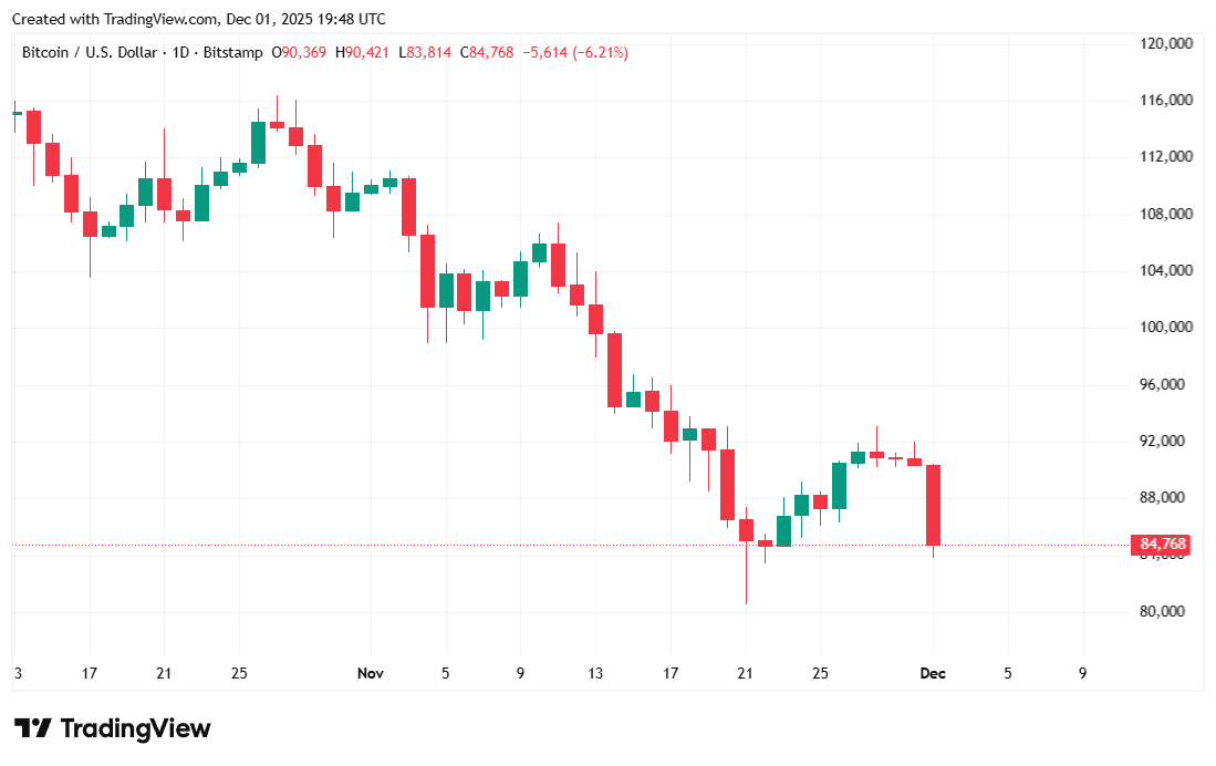Bitcoin fell 7.12% over the last 24 hours and was trading at $84,916.12 at the time of reporting, according to Coinmarketcap. Weekly performance? Oh, it’s better, but still negative, shedding 3.85% in the last seven days. Volatility skyrocketed, with BTC dropping as low as $83,862.25 and soaring to $91,626.32 within the same 24-hour period. Buckle up! 🎢