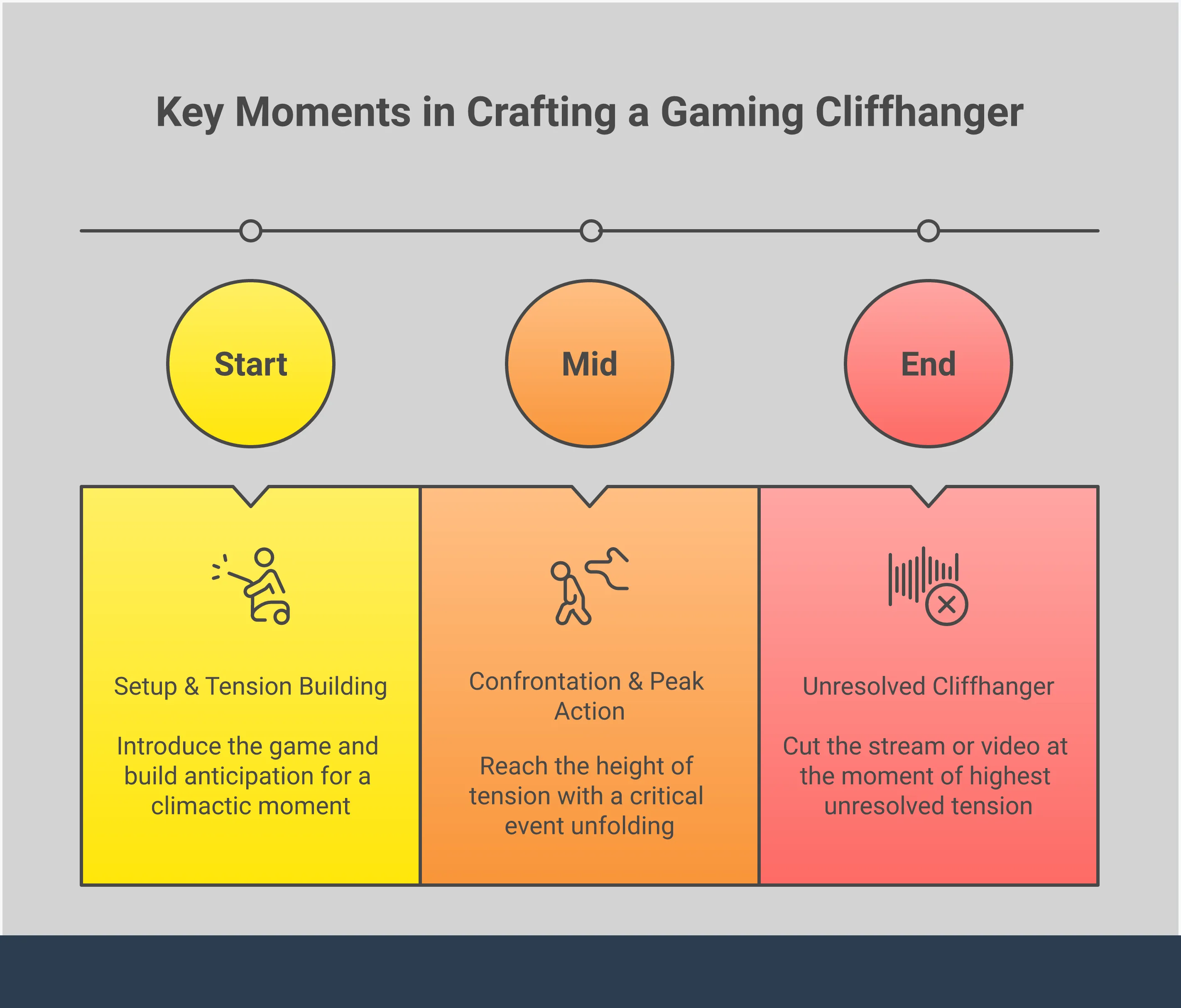 It’s best not to rely on constant, dramatic suspense. Overusing cliffhangers can actually make your audience less excited when something truly important happens. Think of cliffhangers as tools for different situations: small ones to keep things interesting during slower parts, and big ones to leave a lasting impression at the end of a stream. A little suspense, like hinting at danger, can help maintain engagement during quieter moments. But save the really shocking cliffhangers—like a sudden defeat when victory seemed close—for the end of your stream to build anticipation for the next one. The trick is to use them strategically, reserving the biggest moments for scenes that have genuinely built up tension and excitement.