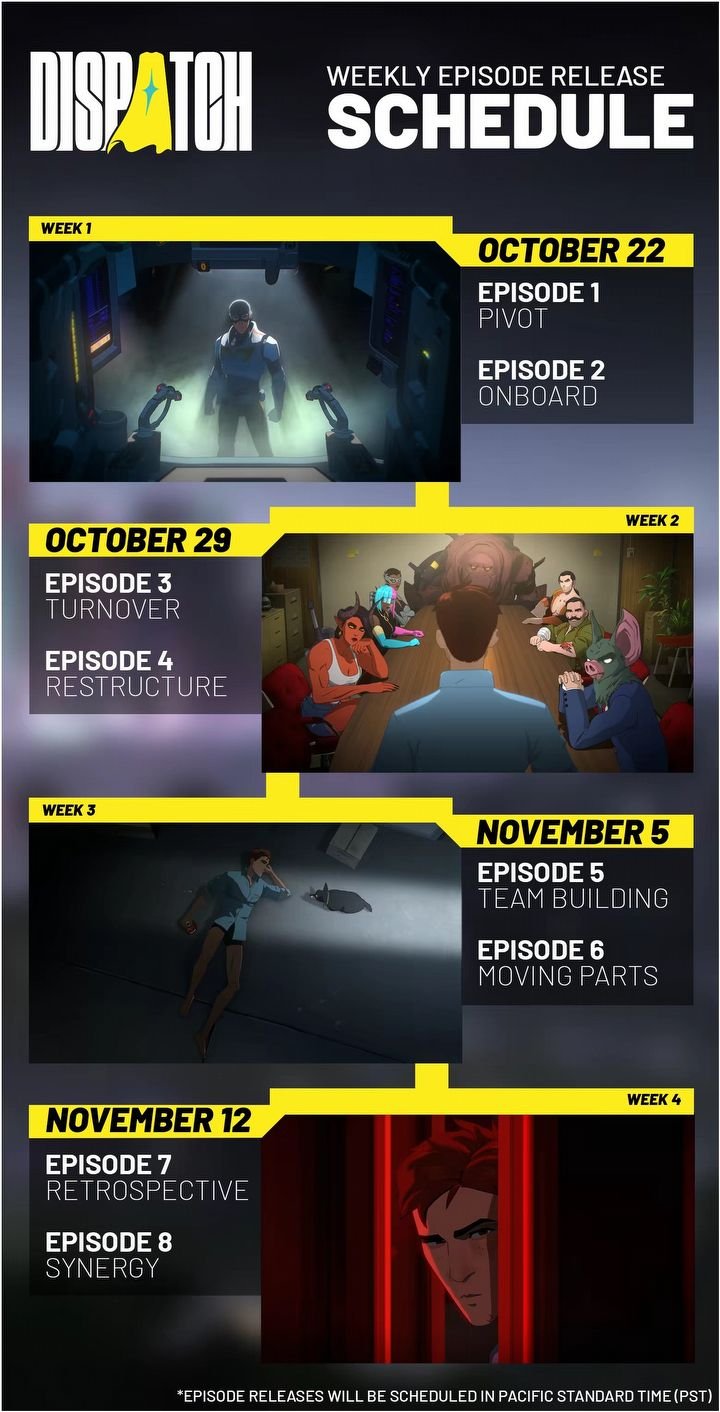 Great news for fans – you won’t have to wait long for Dispatch Episodes 5 and 6! The developers released a full schedule when the game launched, and new episodes come out weekly. We know waiting can be tough, just like with any favorite show, so check out the schedule below to mark your calendars.