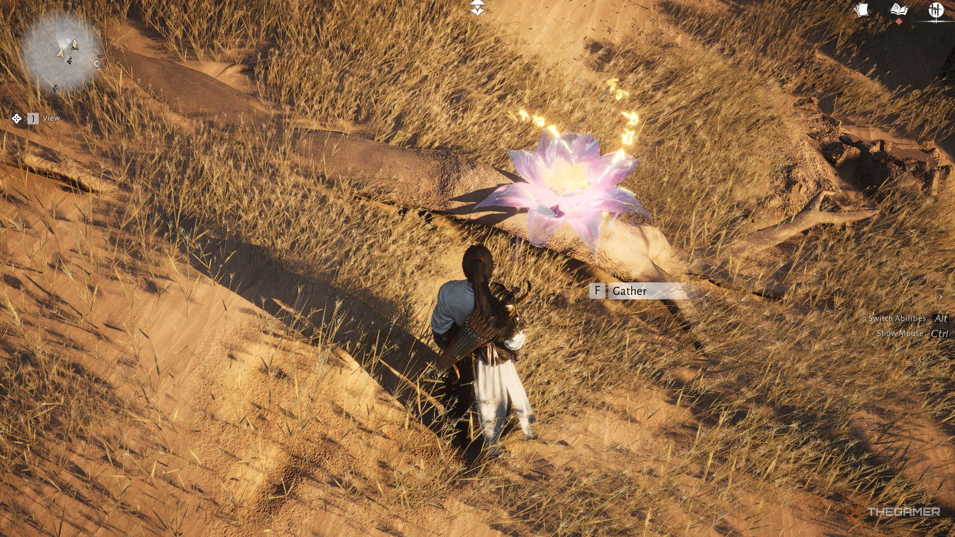 The Udumbara Flower is a rare, glowing purple bloom that appears in unusual places – on sand, the sides of old buildings or ruins, and even on trees with golden leaves. When you find one, you’ll be presented with a small challenge to determine if it’s genuine or not, triggered as you get closer.