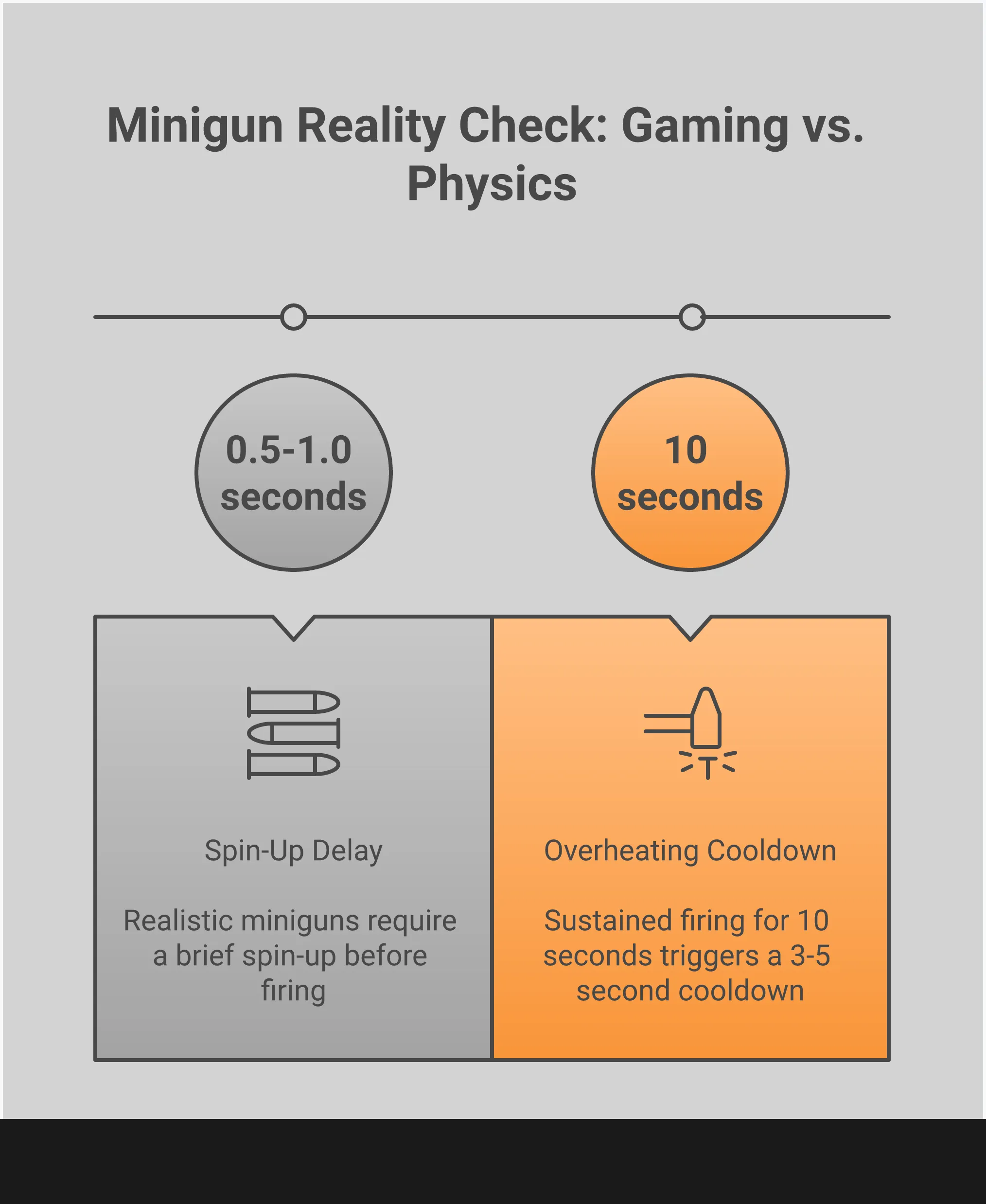 - Fun Comes First, Physics Comes Second: A truly realistic minigun would be slow, clunky, and stationary—the opposite of fun in a fast-paced shooter. Game designers intentionally ignore real-world limitations like weight and power needs to ensure the gameplay stays fluid, fast, and exciting.