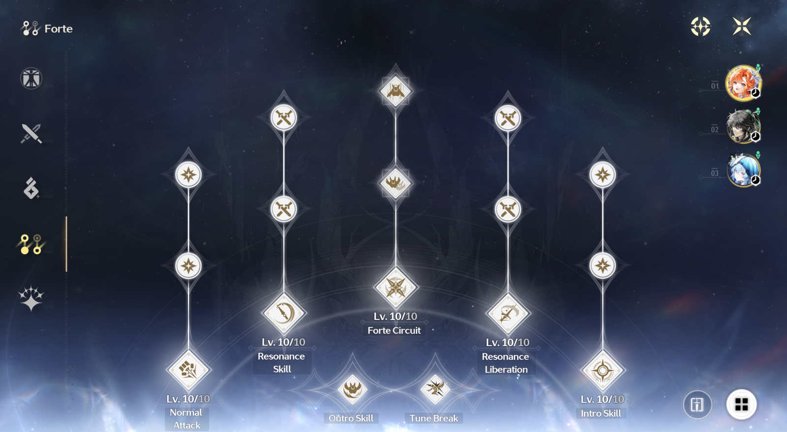 Her primary ability, Forte Circuit, is central to how she plays. It governs her rune powers and stronger attacks, and is the source of most of her damage, making it the first ability you should fully upgrade.