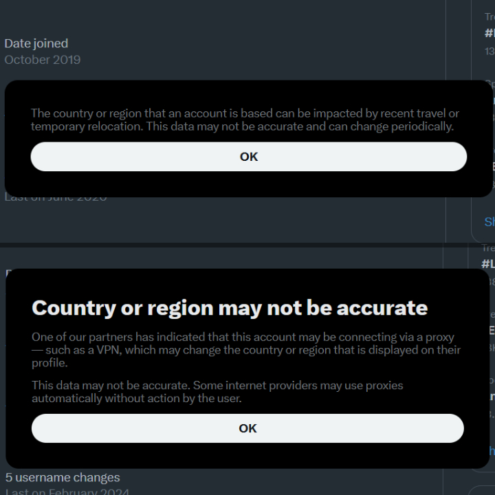 If you click the information icon next to a person’s country or region, X clarifies that their listed location might not be current. It can be influenced by recent travel or temporary stays and is subject to change.