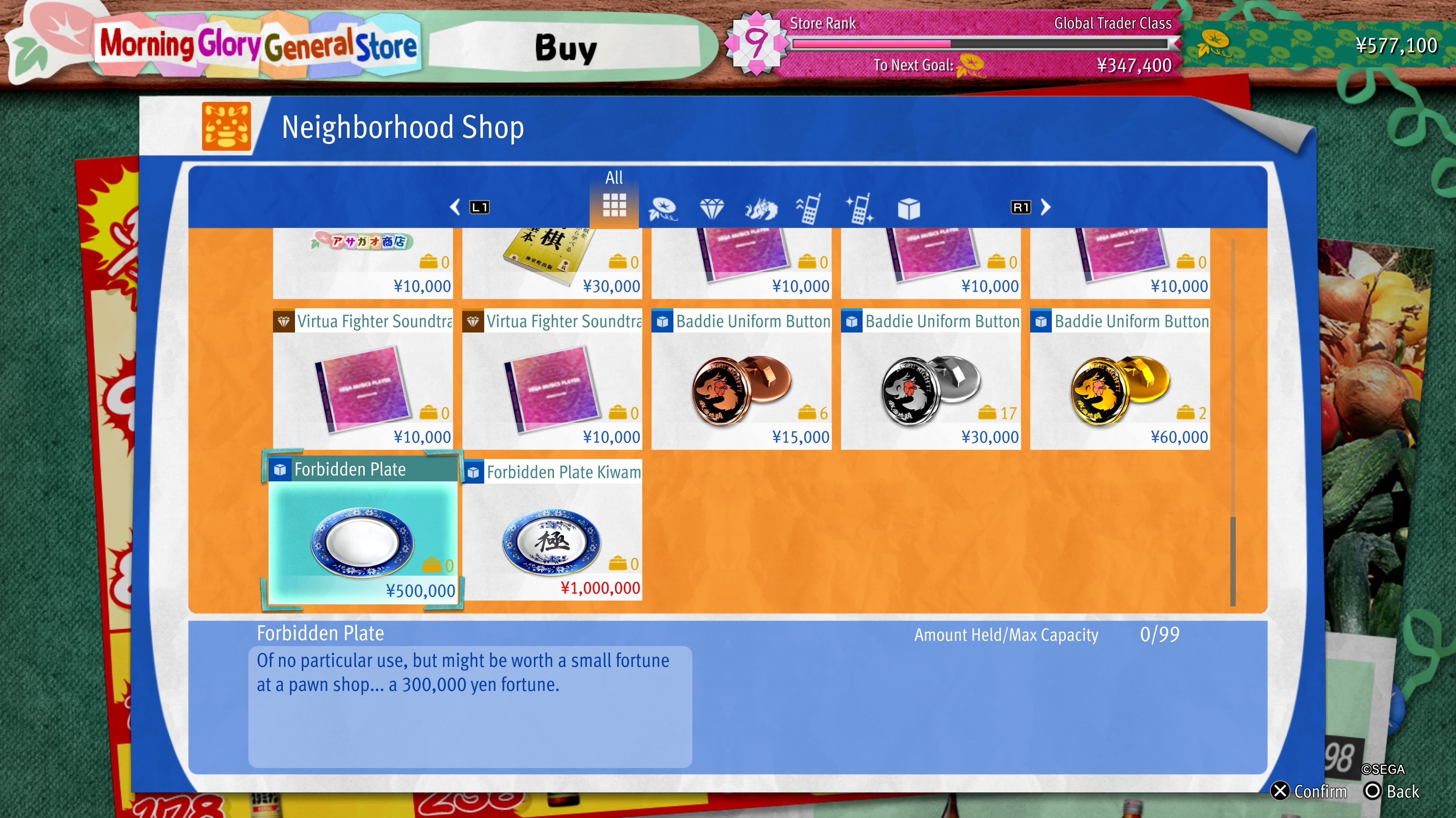If you’ve played this mode a lot and have extra money to spare – enough that you’re not worried about buying food or improving the orphanage – you can purchase these plates and then exchange them at the Pawn Shop for cash that Kiryu can use.