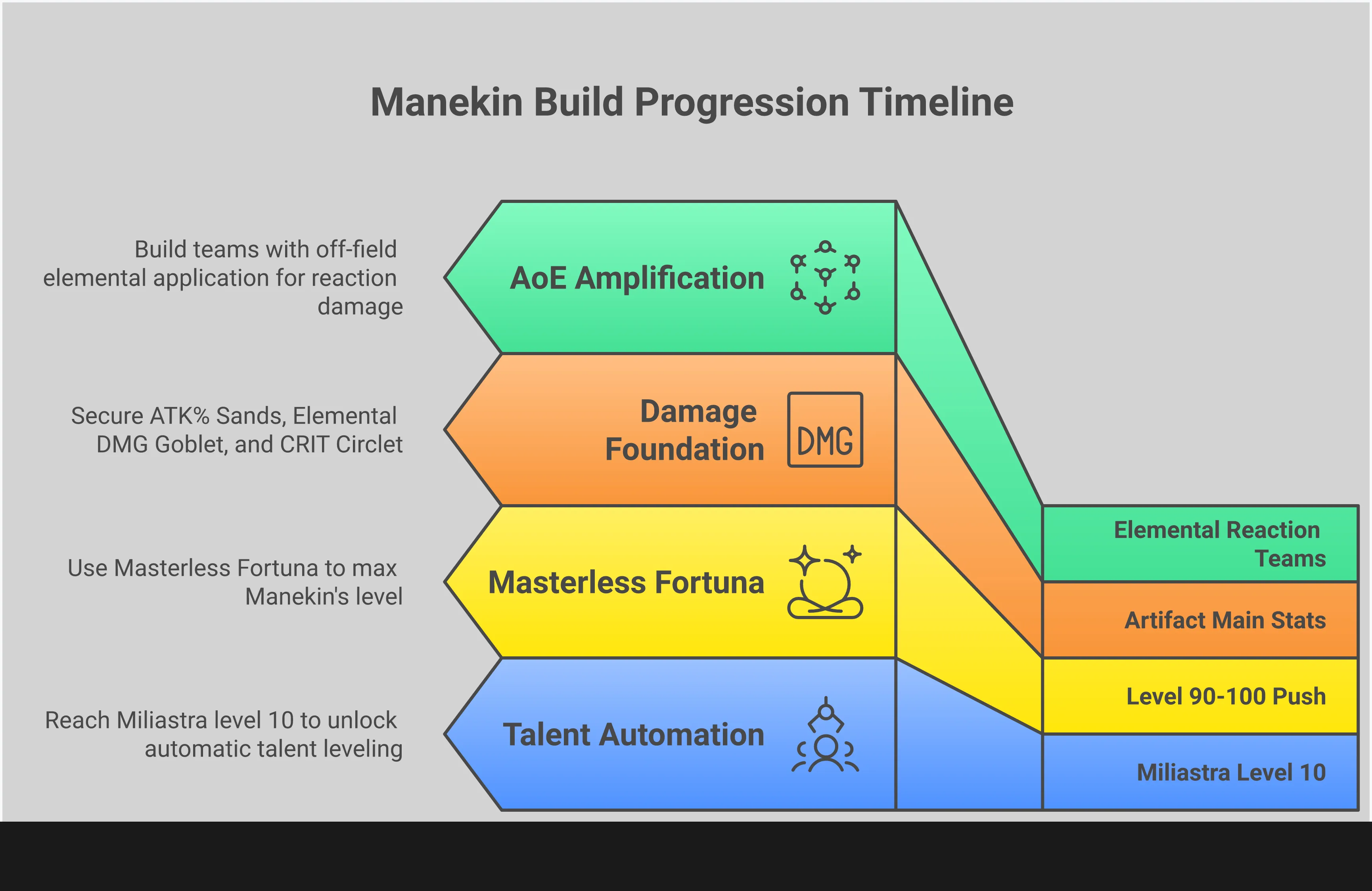 - Prioritize Core Stats and Unique Ascension Materials: Before chasing set bonuses, secure the right primary stats for your artifacts: an ATK% Sands, an Elemental DMG Goblet, and a CRIT Circlet. For the final push from level 90 to 100, remember to use Masterless Fortuna instead of your standard EXP books.