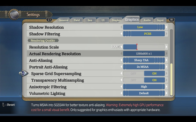 Ys X: Proud Nordics PC graphics presets